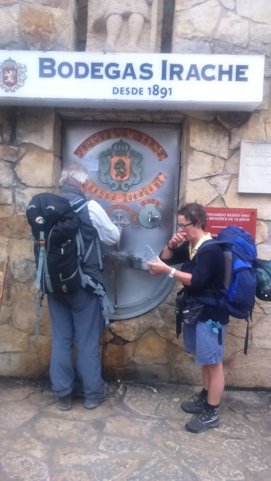 Not far out of Estella we come to the Bodegas Irache with it’s free wine fountain from which, tradition has it, you fill a small bottle and carry it to Santiago de Compostella as an offering. Needless to say most people drink it there and then, and I share a laugh with the other peregrinos (pilgrims) at this alcoholic alternative.