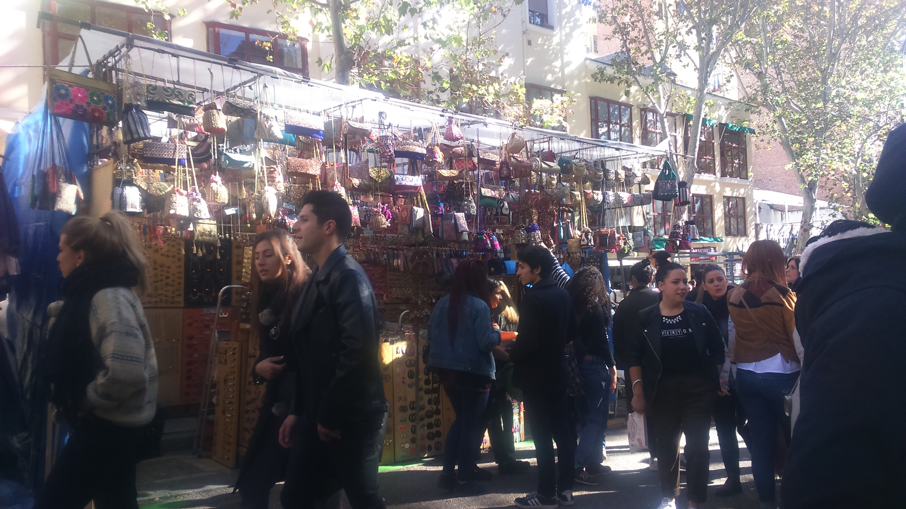 Sunday was street market day! The El Rastro is amazing, with street after buzzing street full of cool dudes selling hippie gear, affordable but original jewellery, and all manner of anything you might need or fancy, like new desert boots and leather purses decorated with Frida Kahlo. The side streets were full of shops selling vintage and antique furniture and clothes, and all the cafes seemed to be offering deals for 12 or more (acceptedly small) bottles of beer, which we saw a couple with a child ordering and drinking their way through.