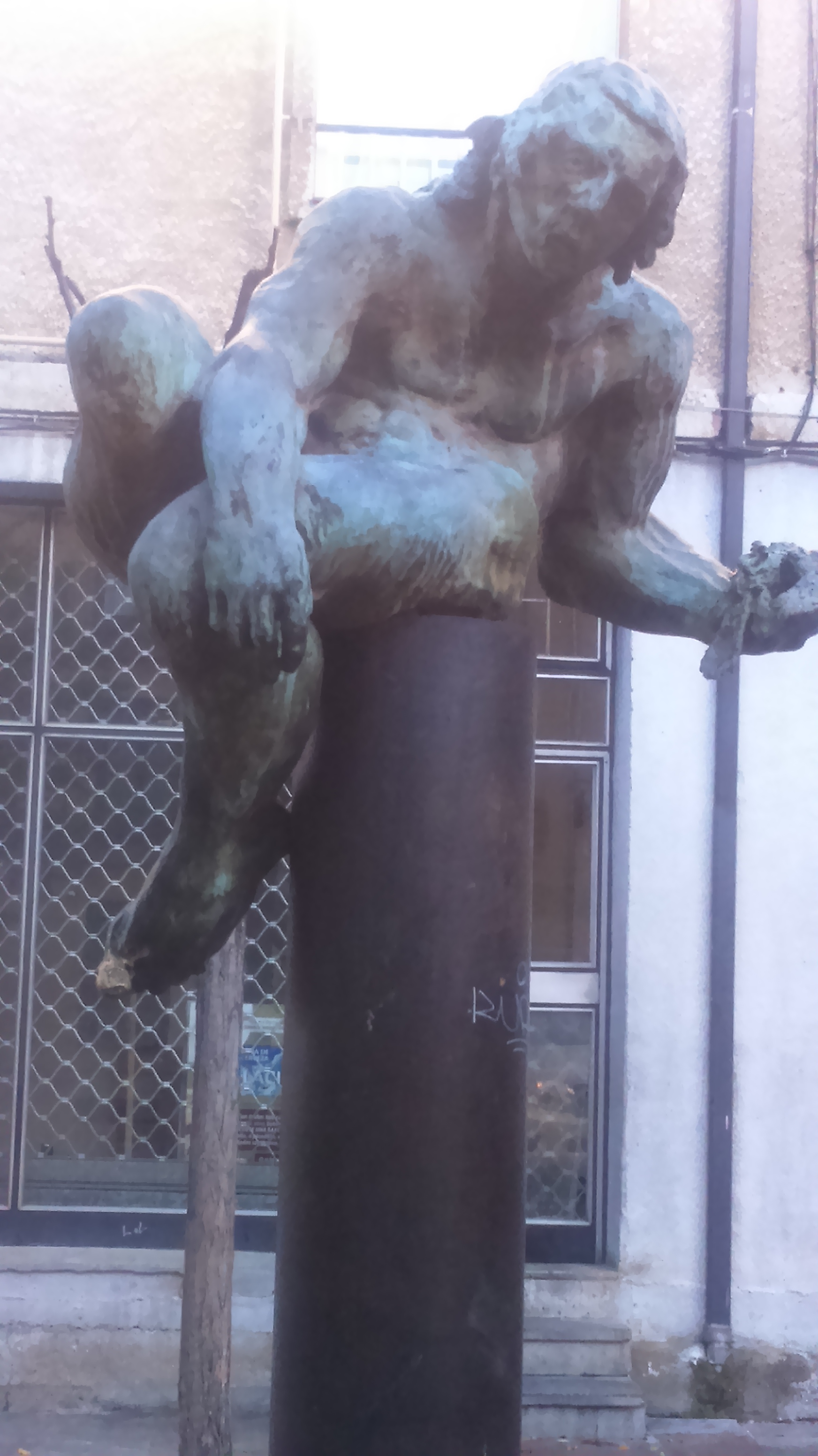 On the way out of town, I spotted this moving statue of a suffering man on a podium. There was more of his work around the city which is well worth seeing.