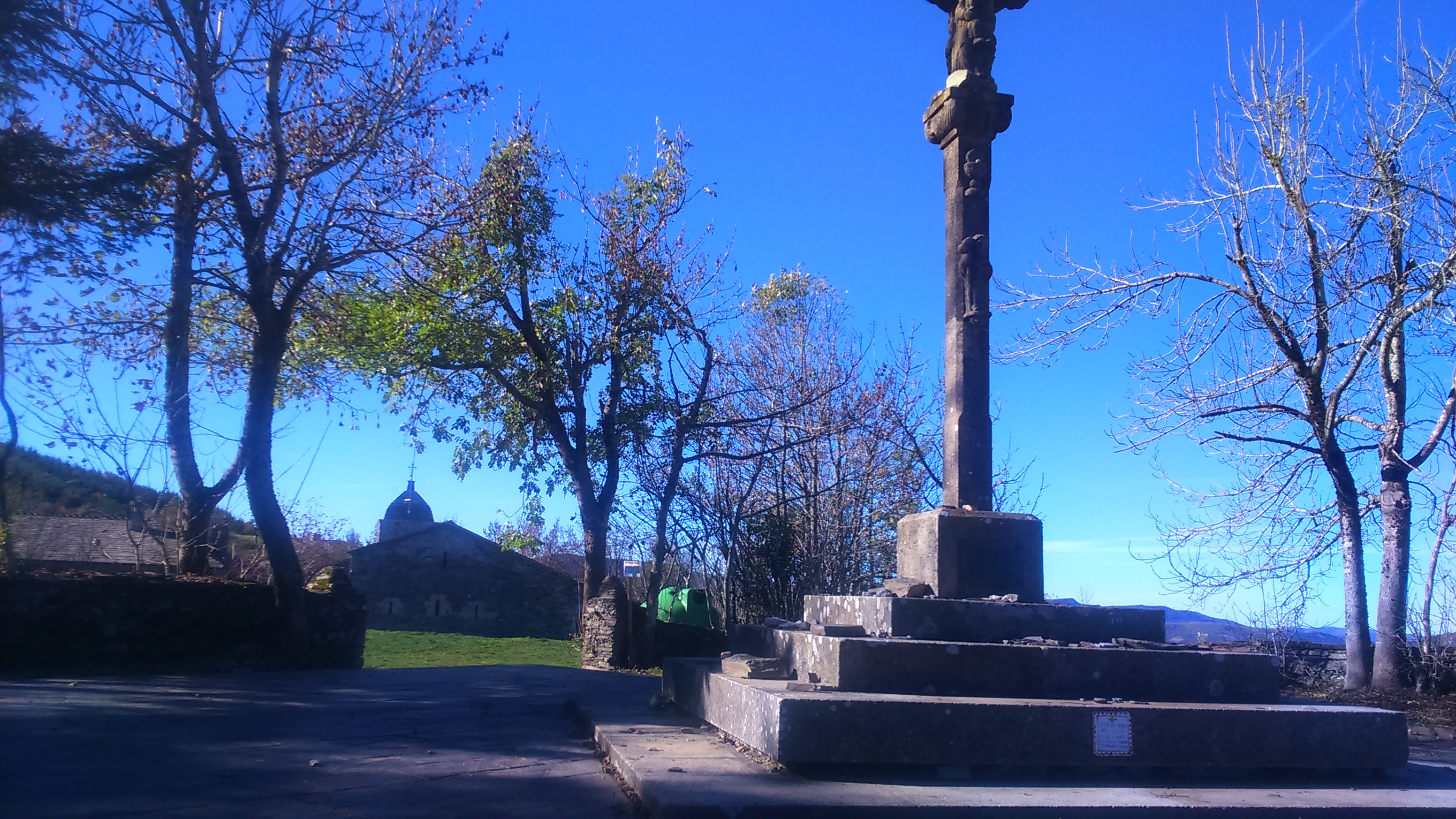 The guide book said the next place was O Cebreiro, and knowing what was ahead encouraged me to keep going. Stumbling and crawling now, straining thighs, panting up tumbles of rocks, rounding a corner and thinking we were there, no! Passing a woman getting her breath back. And finally, the summit, with noble cross, 9th century church, thatched pallozas (huts), ground-hugging stone and slate buildings, all a mere 150km from the city of Santiago.