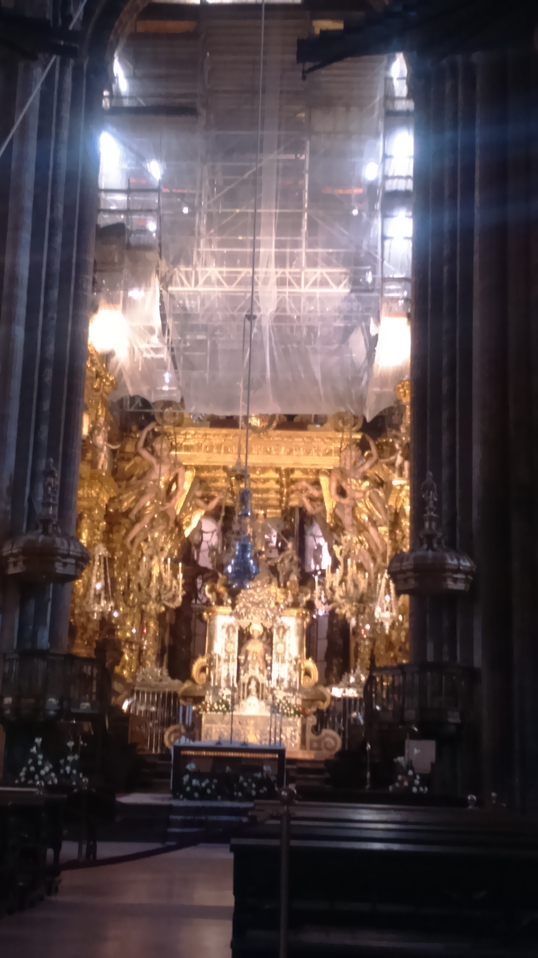 After a warming and celebratory meal, followed by a nap, there were streets to walk, shops to visit, familiar and first-met backpackers to greet. A lengthy but spacious re-visit of the Cathedral with its golden altar, and many side chapels, where worshippers chanted and prayed, seemed apt.