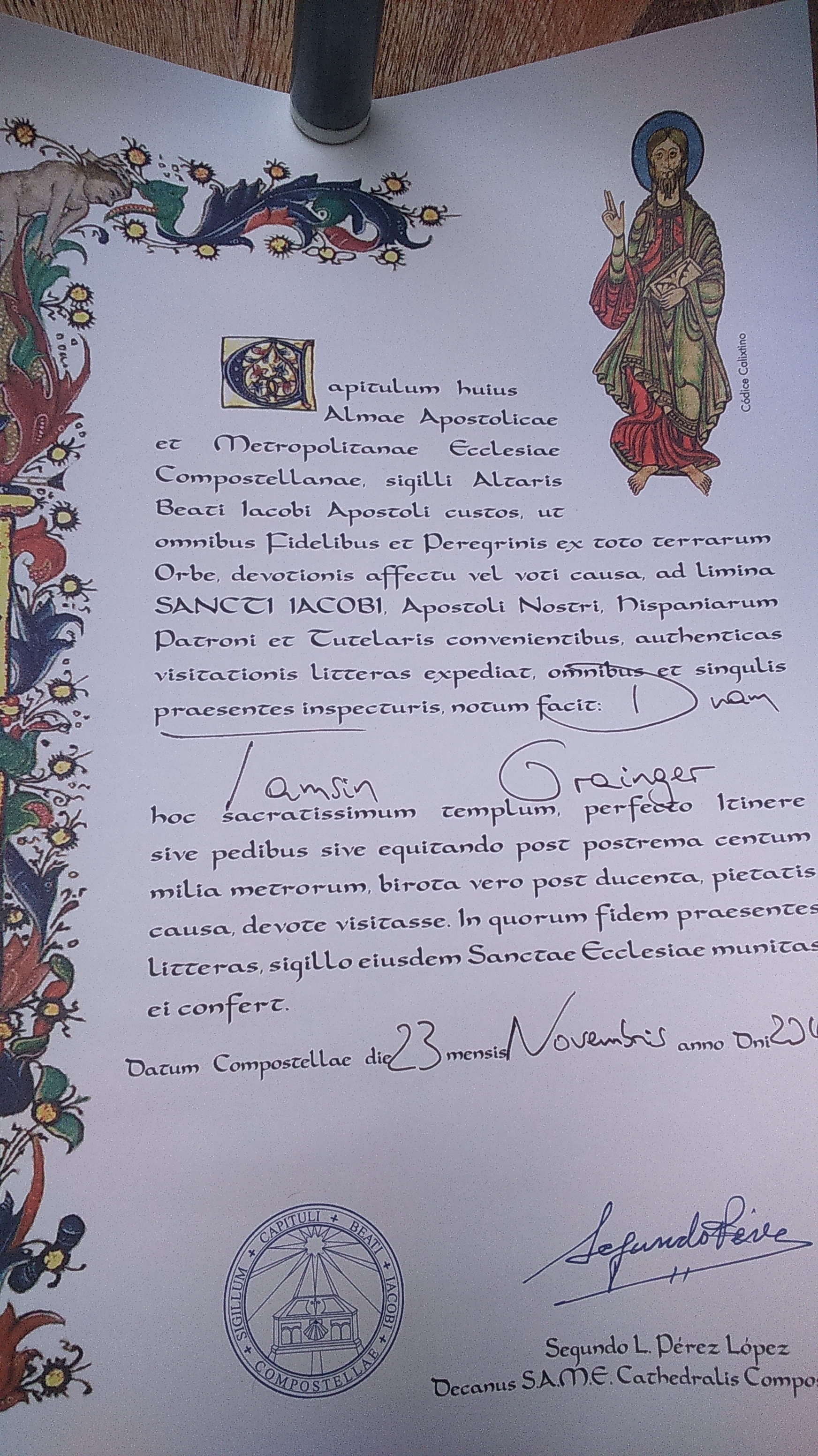 With my raggedy piece of paper, stamped at every hostal I had visited along the way, I went to the credentials office and got the final seal and certificate.