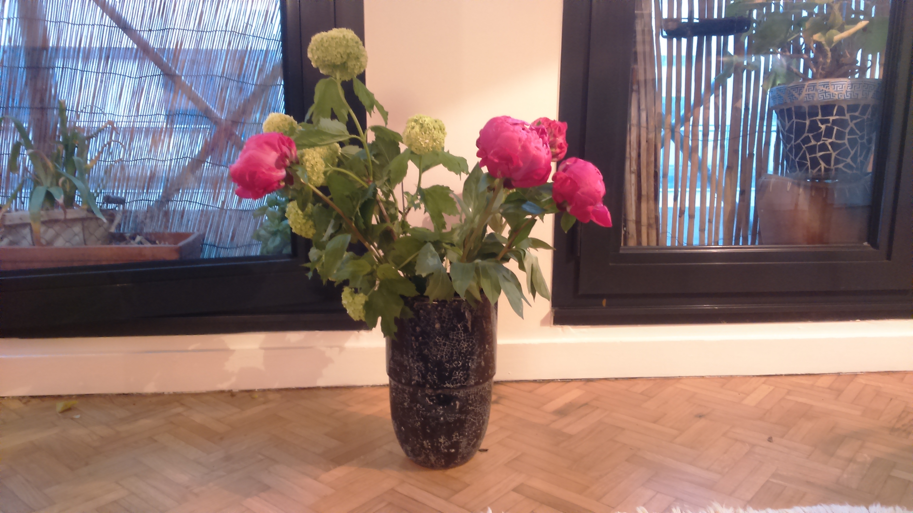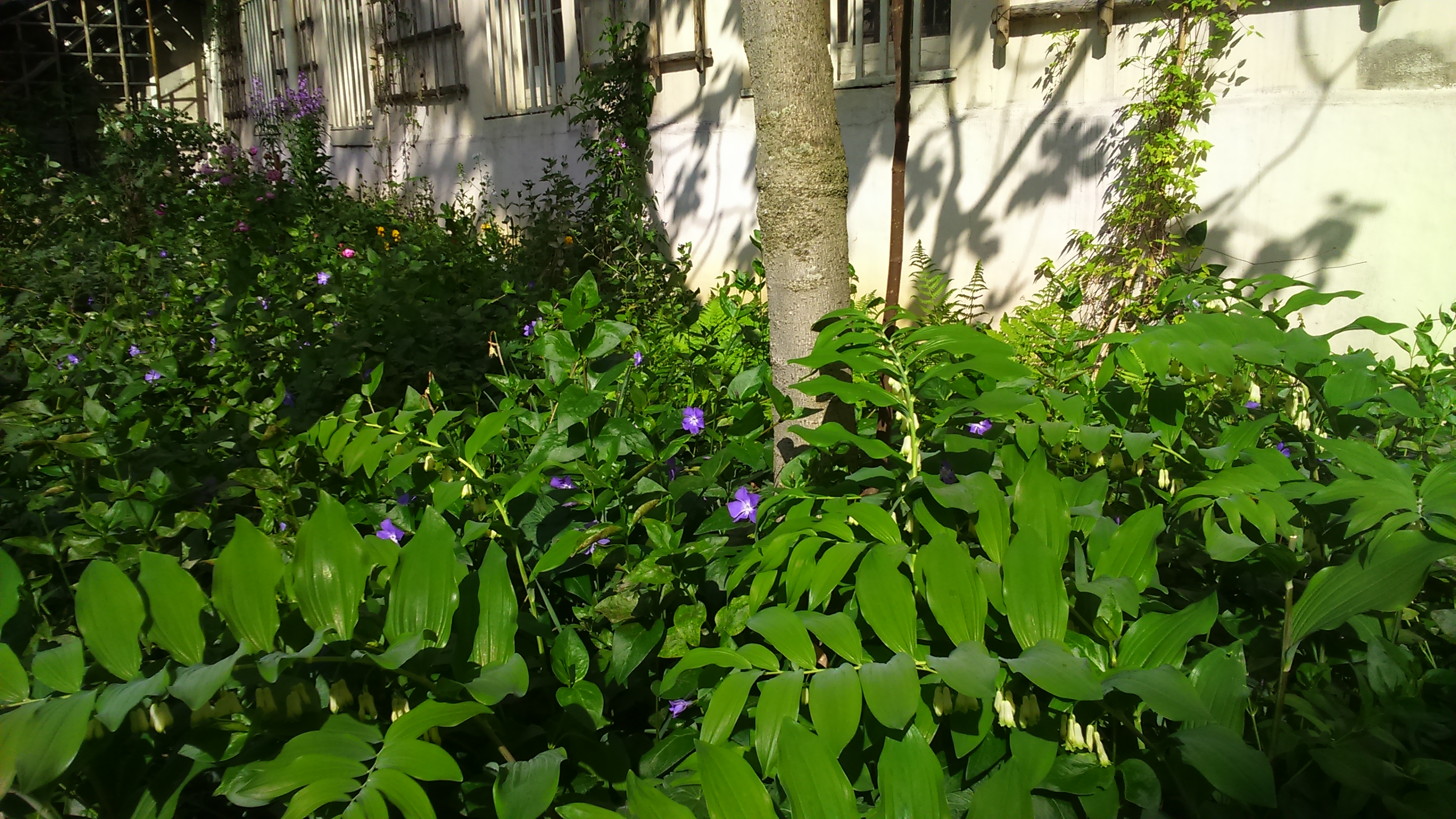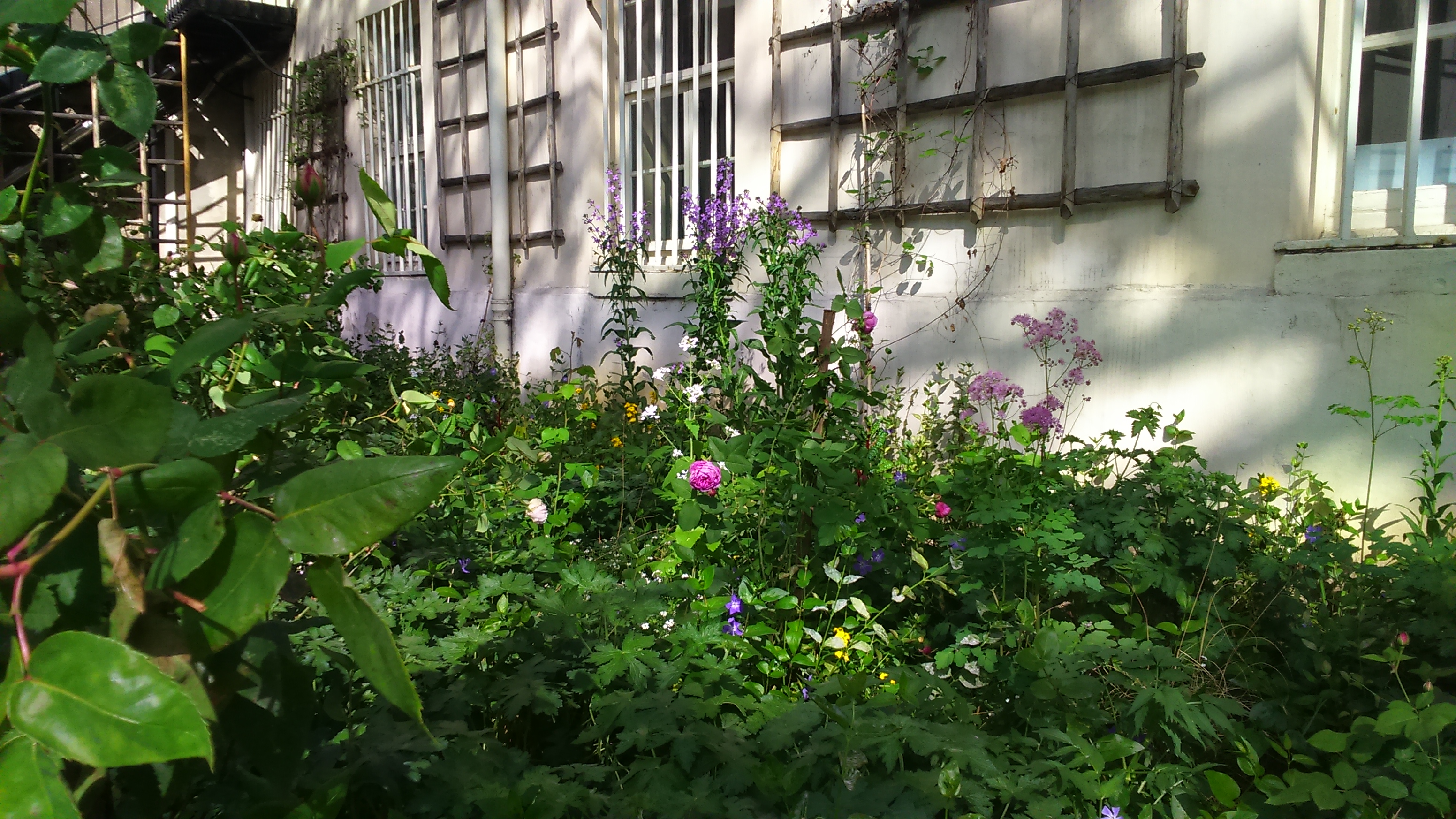 Later I lounged in the beautiful garden, shut my eyes, enjoyed the scents of roses and listened to the bees by my ear. I breathed out relaxedly. There are purple periwinkle, geraniums, yellow wallflowers and white honesty. Lovers wandered just like they are supposed to do, speaking each other’s languages.