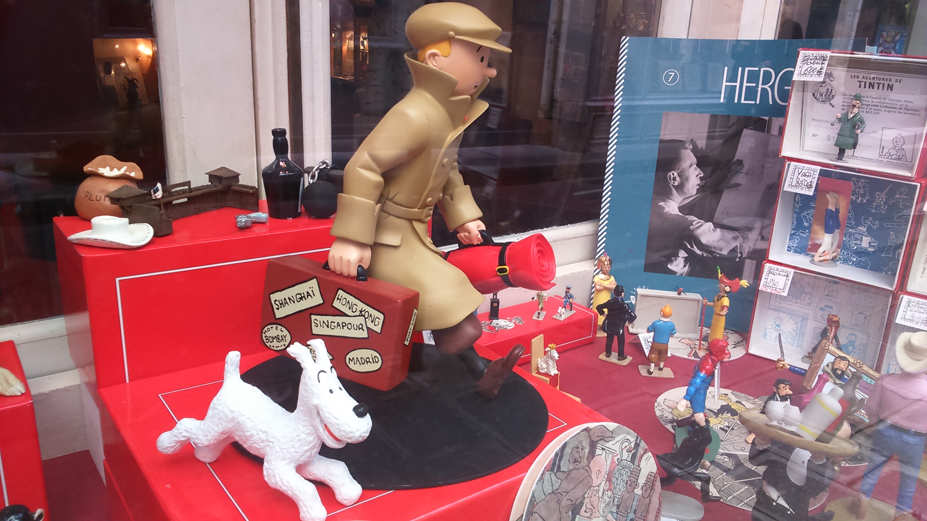 At least they will know I am thinking about them: an umbrella with the Eiffel Tower on it in the Galeries Lafayette (when I go in for the toilet) for one daughter, a collection of pretty things for the other, delicate white porcelain for my sister, Tin Tin paraphernalia, eye-catching graffiti.
