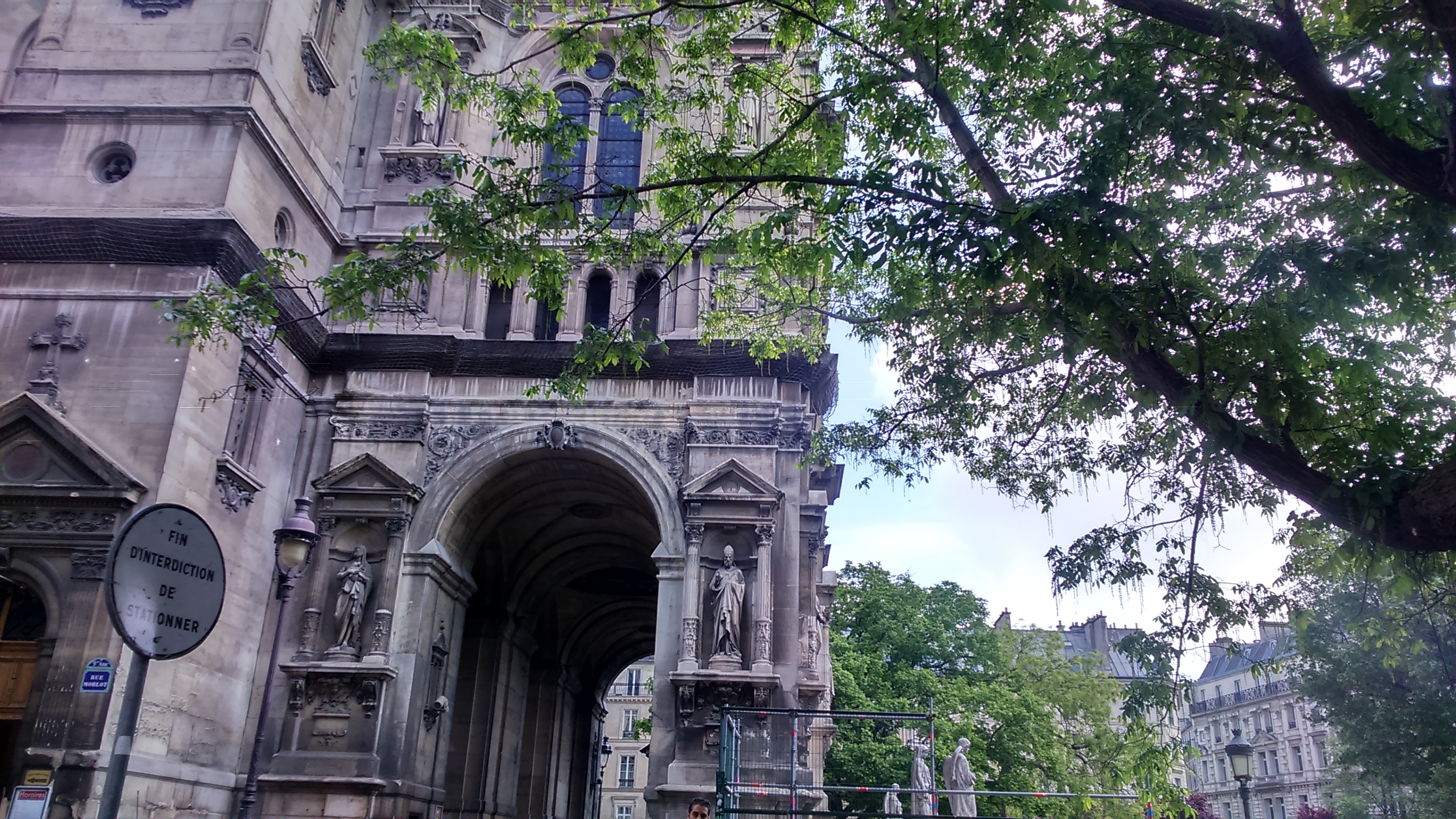 In Trinité there are restaurants from all over, and a grand church covered with scaffolding overseeing a park where people are eating lunch between kisses.