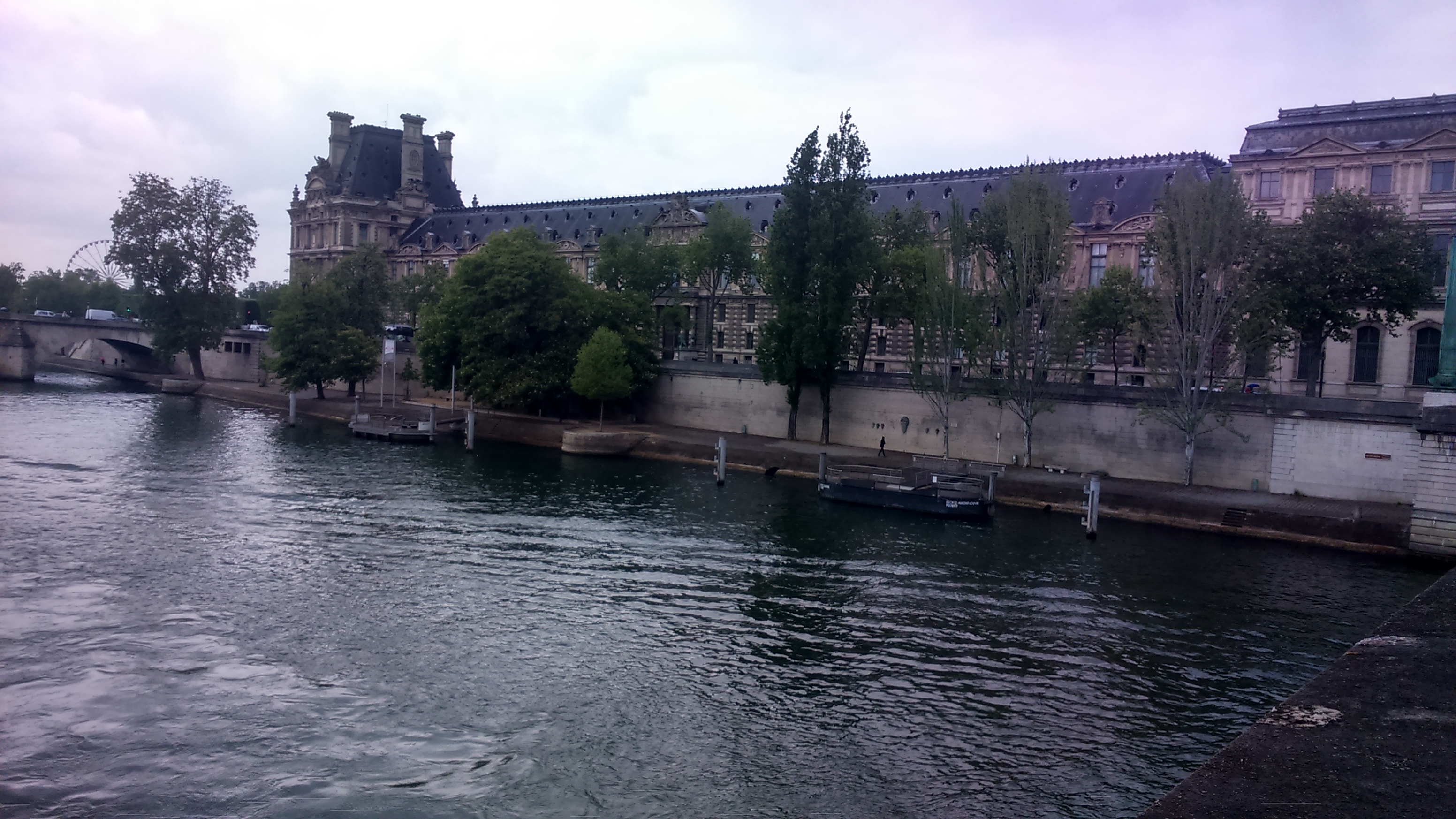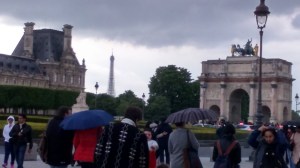 It rains! Nay, it pours, as I traverse the Pont du Carousel, walk beside the Seine, and there is a book seller straight from the film Midnight in Paris by Woody Allen.