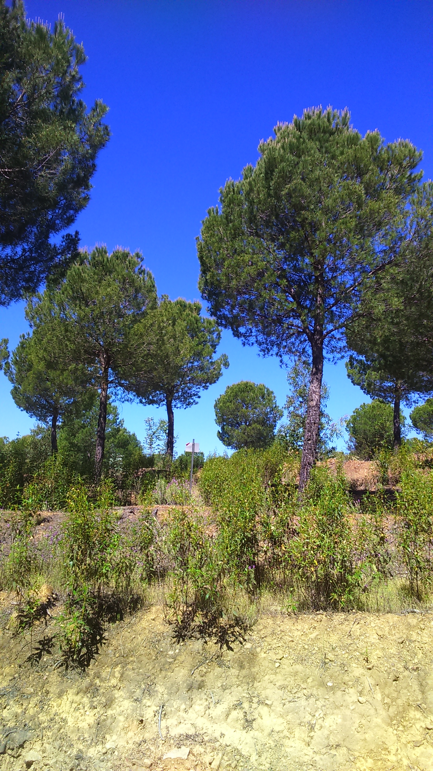 There were soft, soft, fine grasses curving over in the mild breeze, black olive trunks contrasted with swathes of yellow flower heads and hopefully, I mused, I was over half way to Almadén.