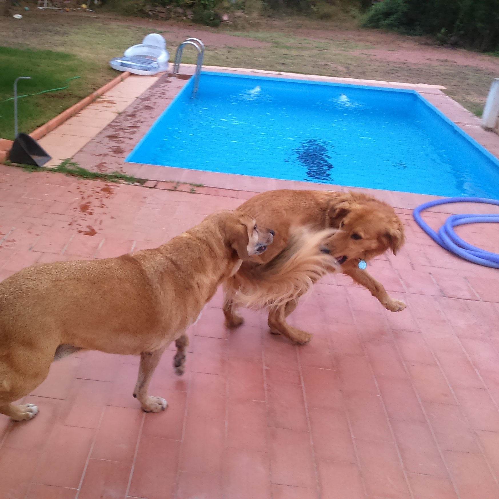 Inside there was the sound of trickling water from the goldfish tank, outside the swimming pool jets, and occasional renting of the peace by the dogs’ warning barks.