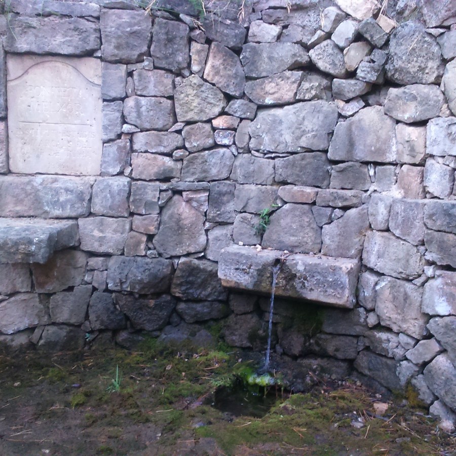 Other walks I made during the following week were frequently in 30 degrees, with warm golden evening light, and I got lost a lot: I came across a fountain that way (photo at top of page); I admired the goats which were multi-coloured with twisted horns, bells tinkling, and ear tags – they were nervous of me but not of the dogs; and the magnificent variety of greens.