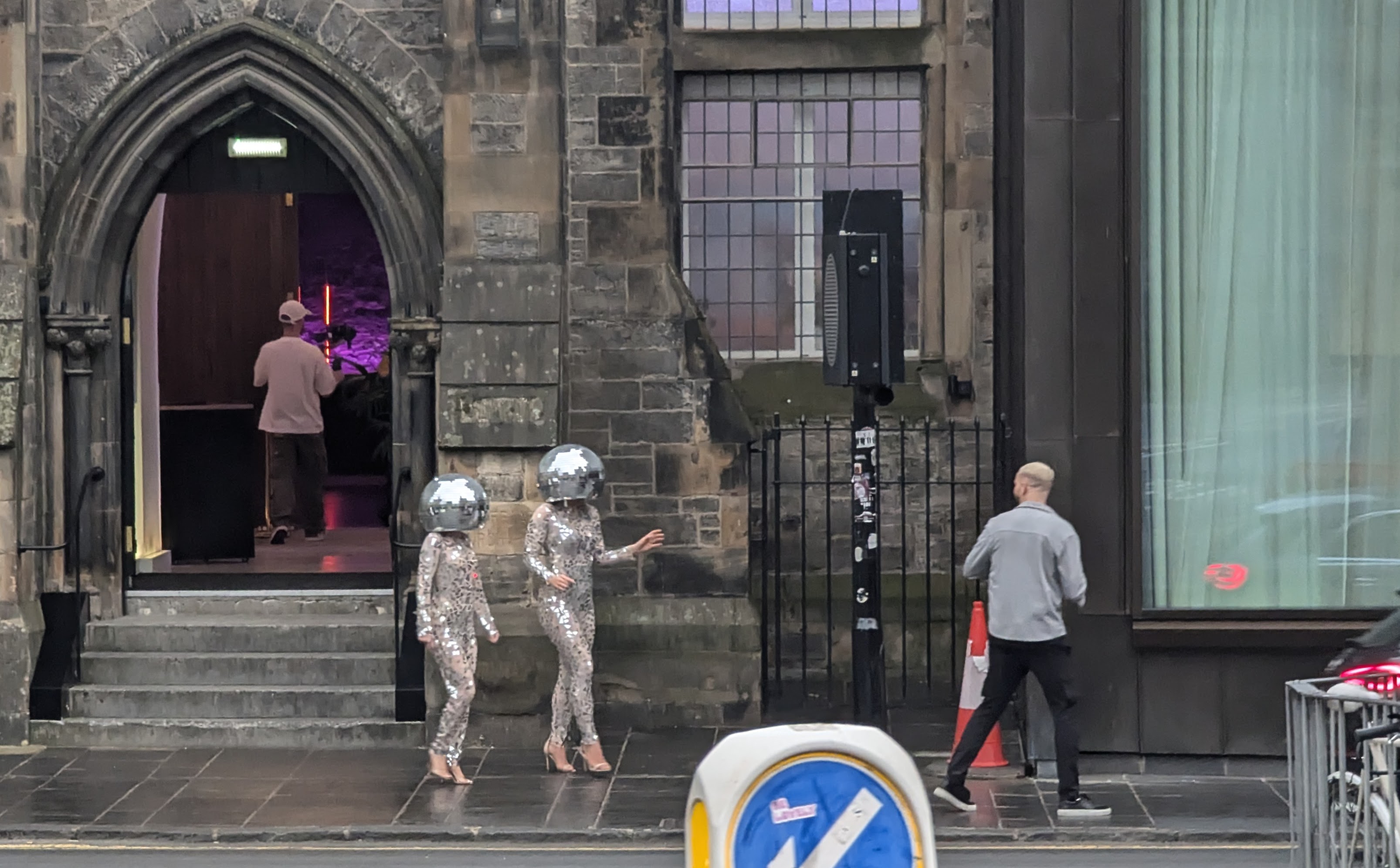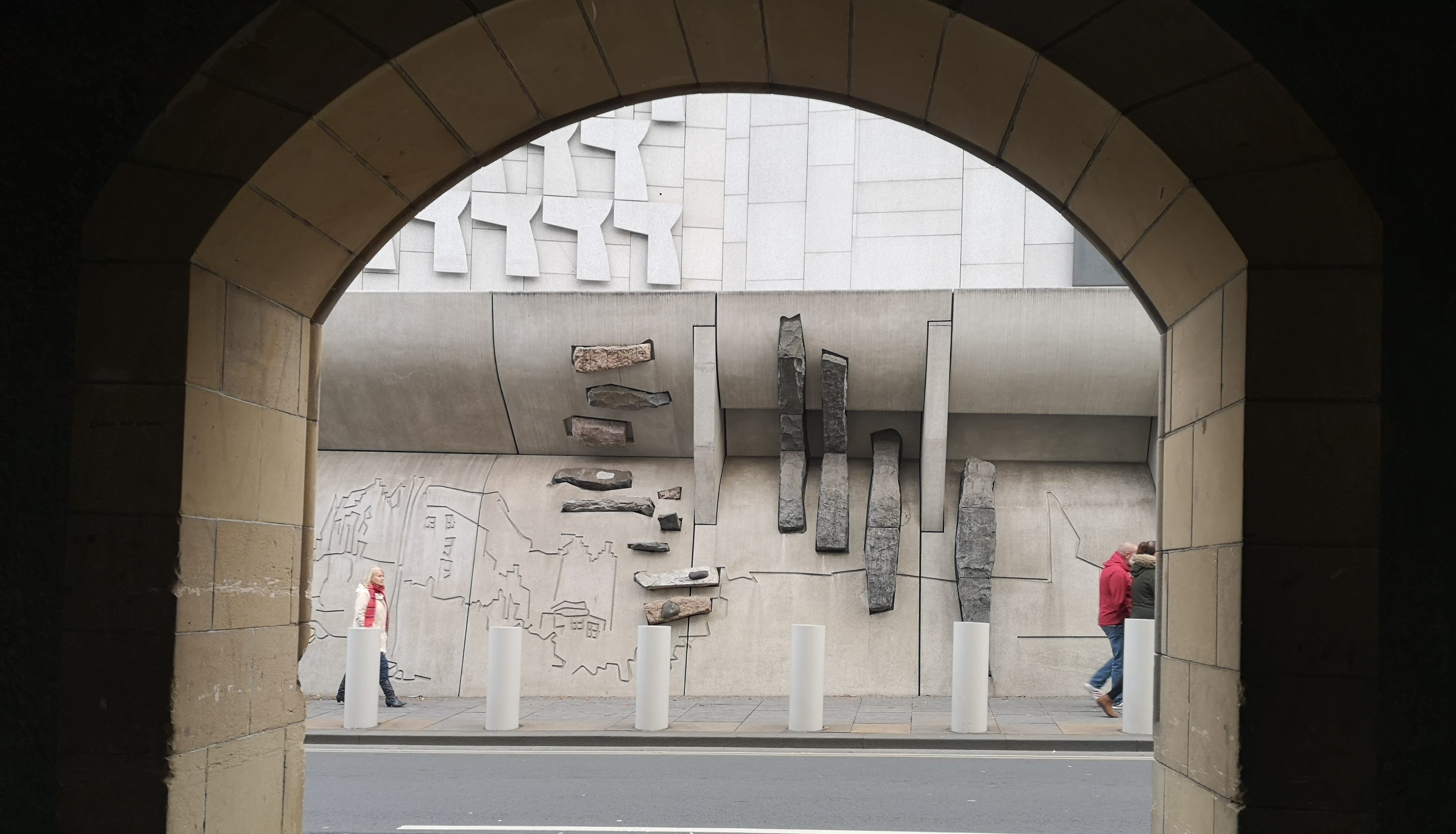 Detail, Scottish Parlaiment building, EdinburghDuring August, Edinburgh hosts the Festival (Fringe, International, Film, Art and more). You can see characters from the shows walking around the city