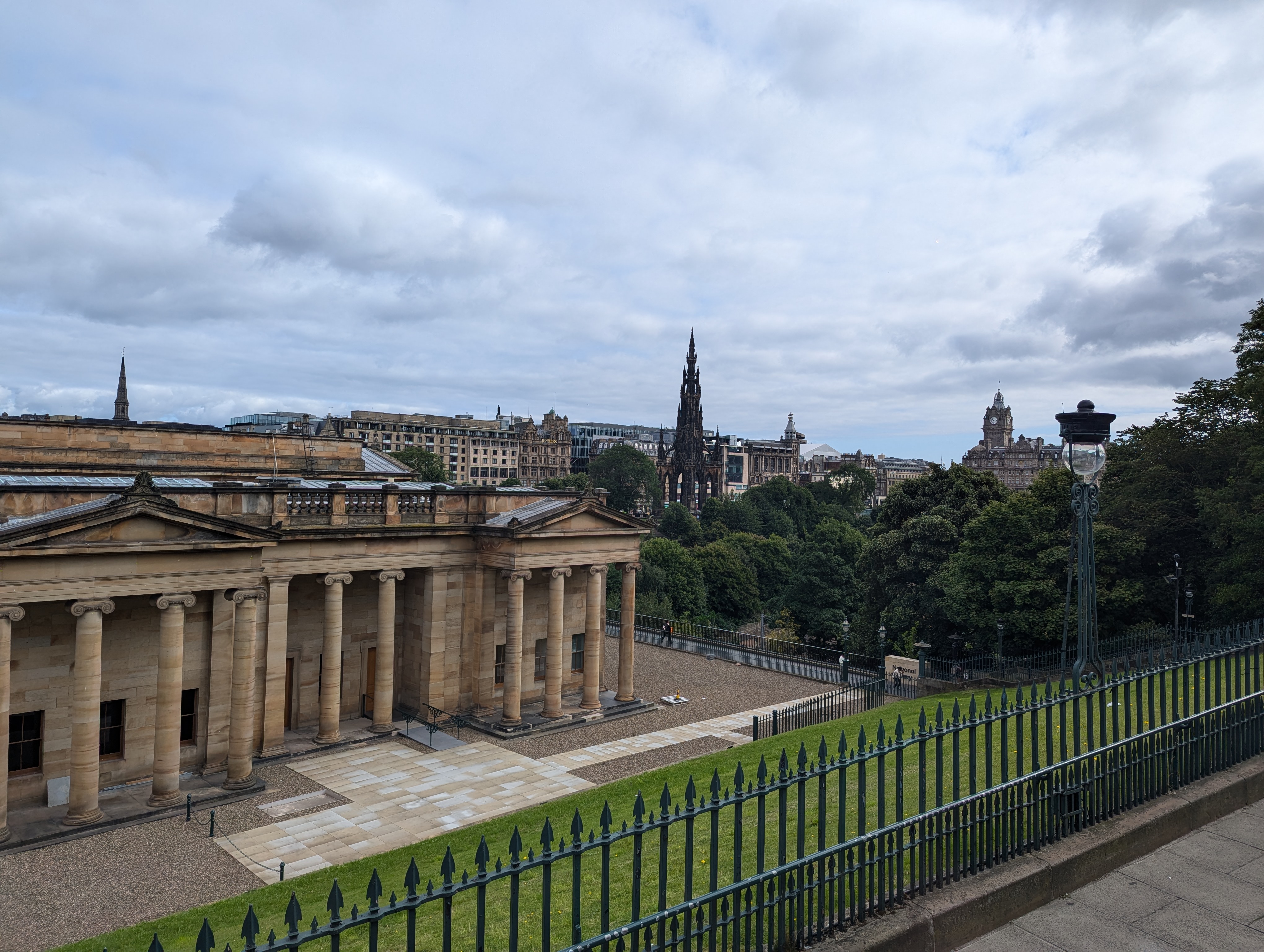 The impressive, neoclassical buildings of the National Galleries, built by William Henry Playfair in 1859 at the foot of the Mound.