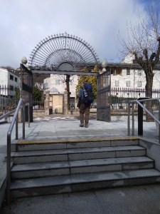 Then we went over the road to the modern baths and took advantage of the Pilgrim Discount (4 euros) for a leisurely swim and laze around on loungers, with a huge blue bathrobe thrown in for good measure. It was a small pool with one fountain and the only others present were a family with 2 young daughters, so reminiscent of my own in days gone by. I had a good sleep and after an hour and a half my feet were barely aching at all. Wonderful. (They are open until lunchtime and then reopen later in the day. )