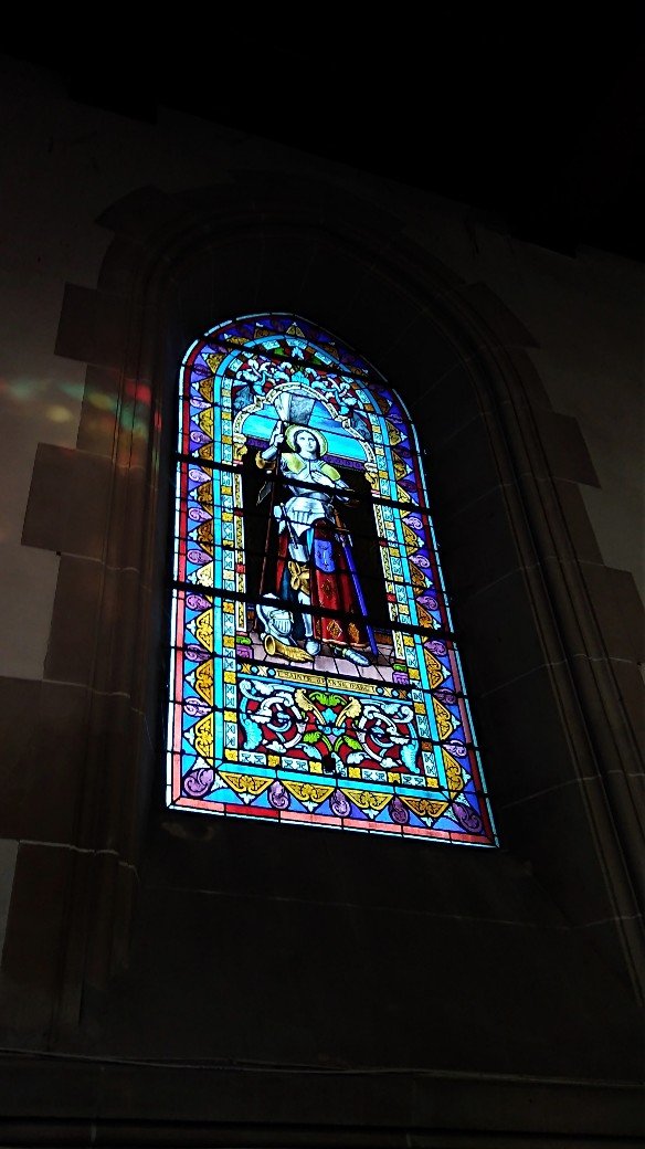 St Joan of Arc – one of the luminous stained glass windows of the chapel.