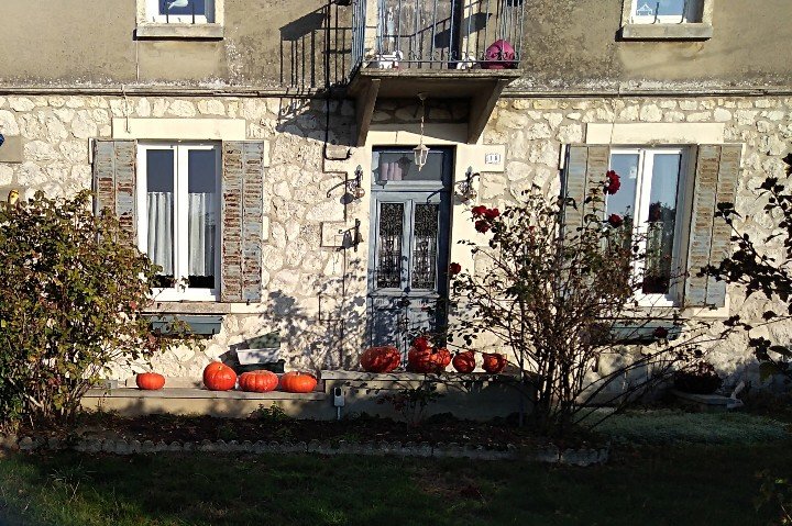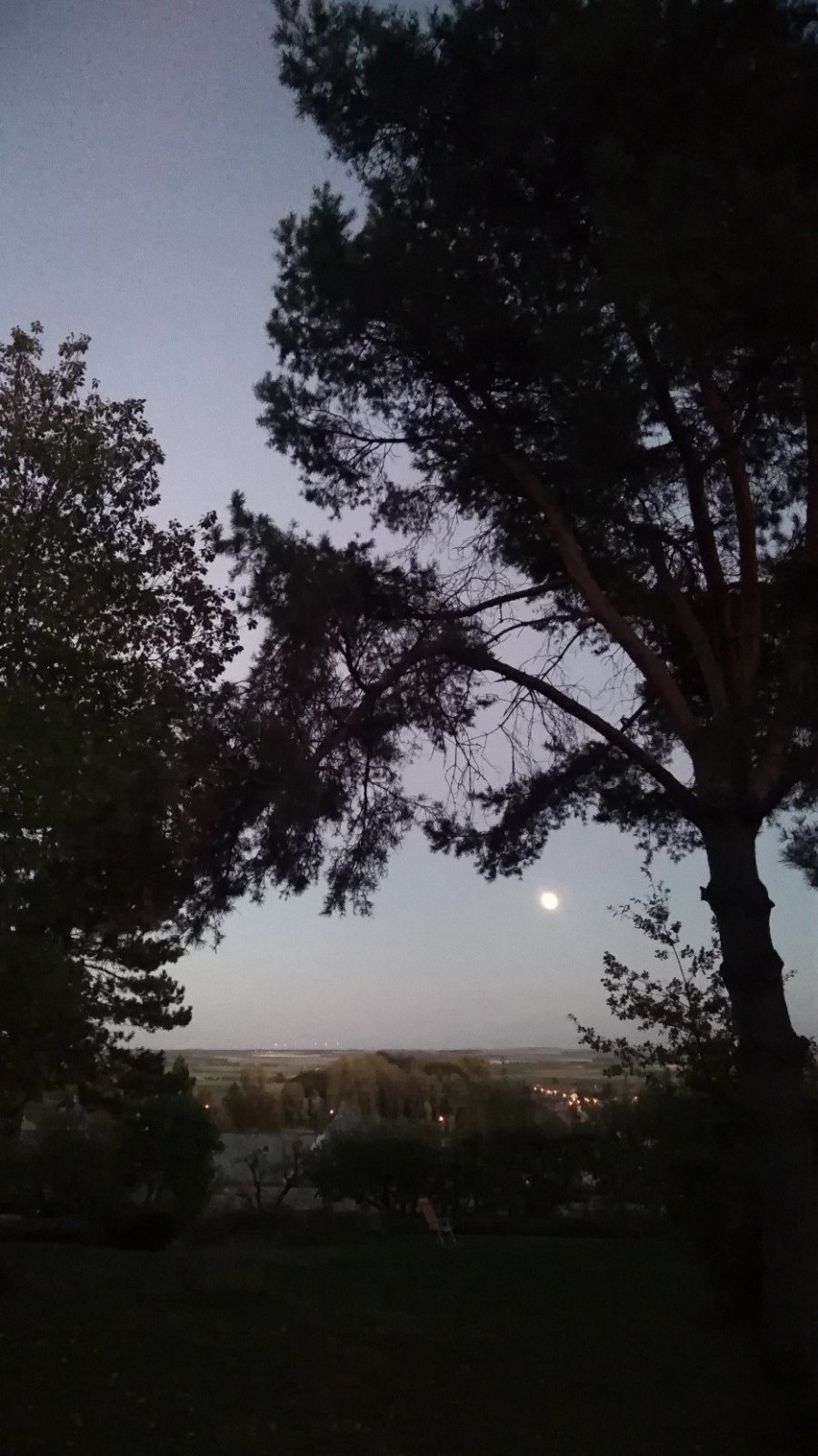 The sound in the trees kidded my body into thinking it was colder than it was. Still, I pulled my hood over my hat, poked my thumbs through the holes in my sleeves and wormed one hand up the opposite arm. The chickens had been put to bed I realised, and there was no sign of the peacocks. A dog barked. The church bell tolled. I recognised a halloween sky but minus the bats! And I knew there was revellry going on indoors.