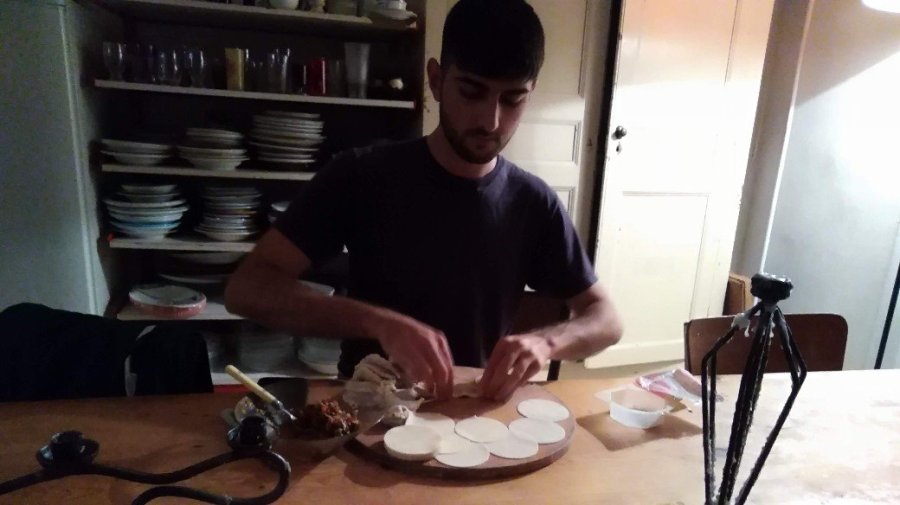 J makes dumplings – there is always lots of kitchen activity: fuels the brain!