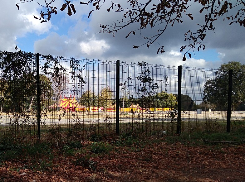 Circus Big top, Cirque Pinder, glimpsed through the fence.