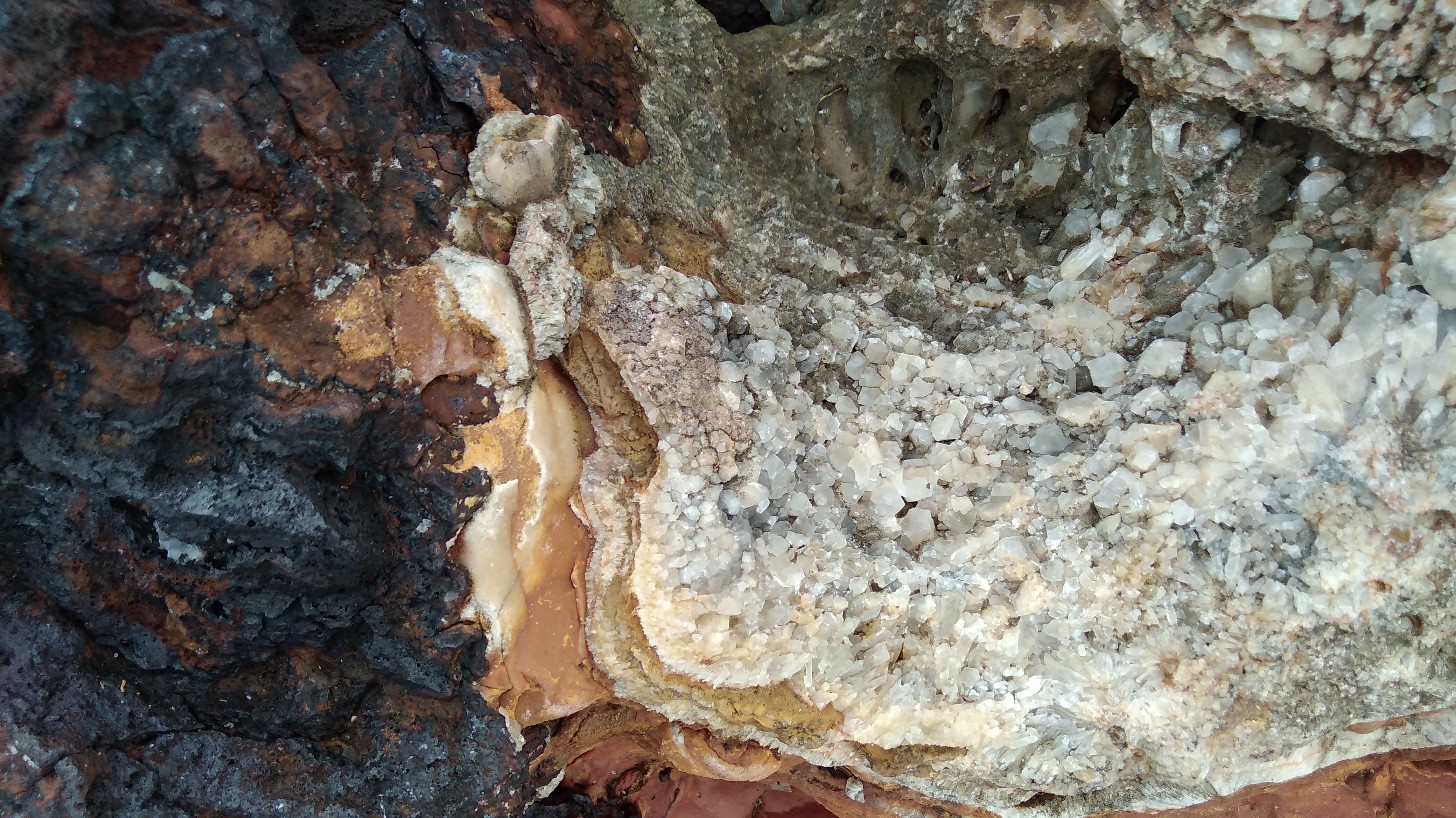 Much of the higher land consists of slabs of rock rich in oxydated iron and there are quartz crystals under ledges.