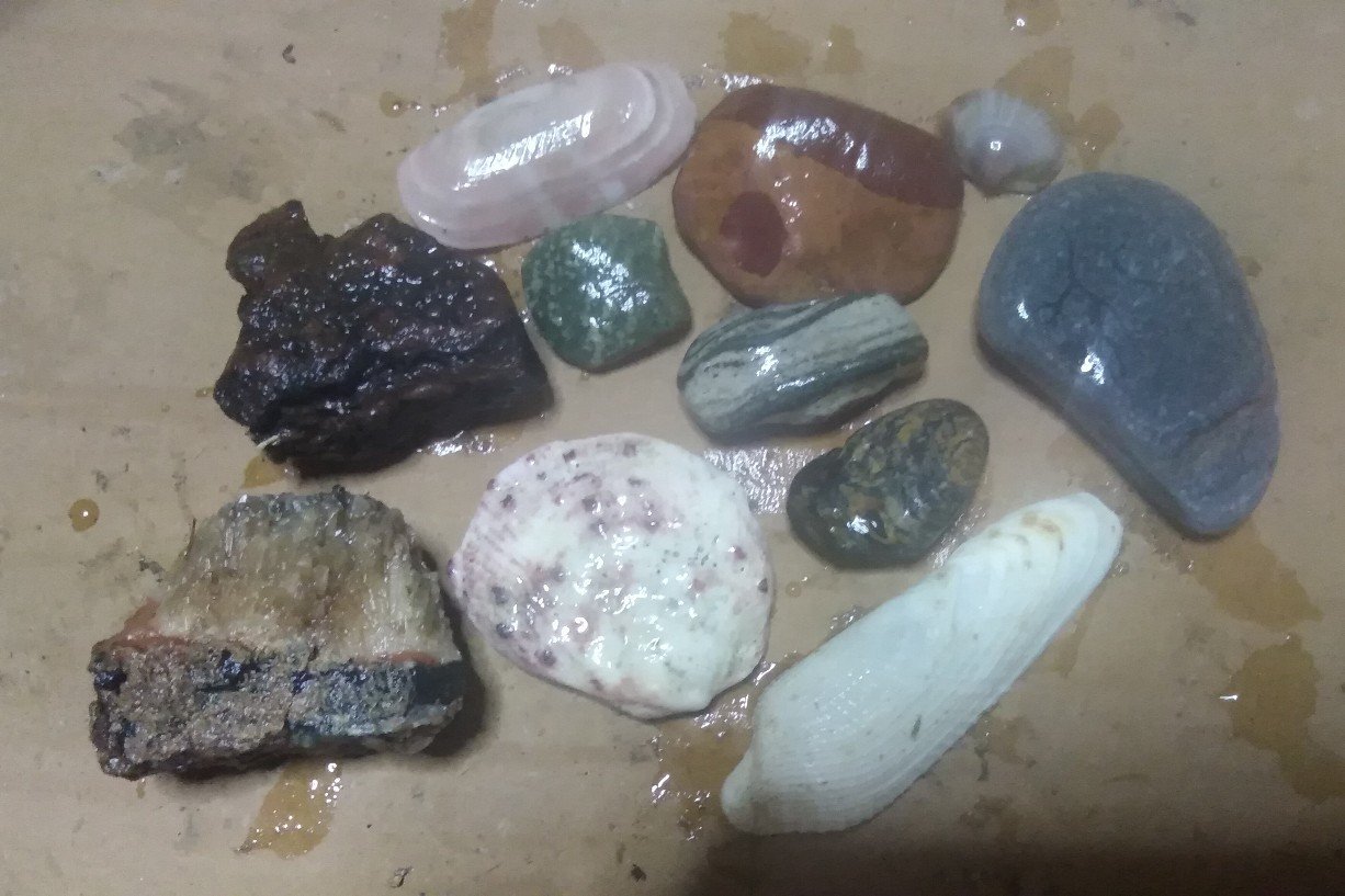 All along this stretch glorious colours can be found: pink, blue, white, bronze, yellow, cream and golden. They simply gleam when the waves wash over or the rain drenches them.