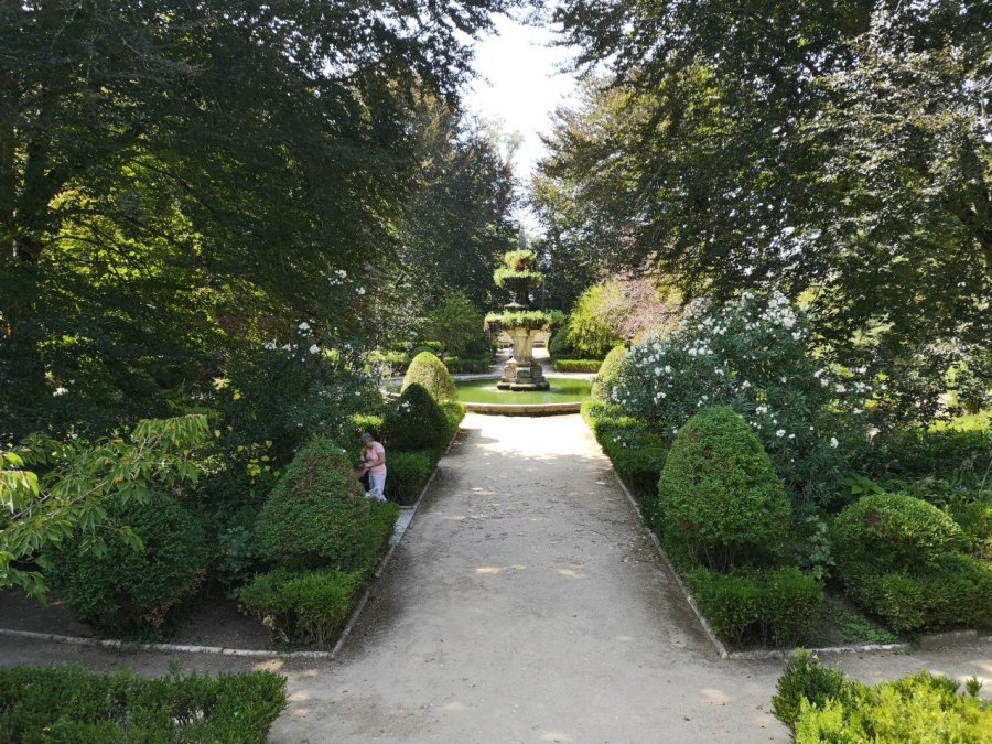 There is the garden which centres around the fountain : concentric arcs of Box with grand old trees: