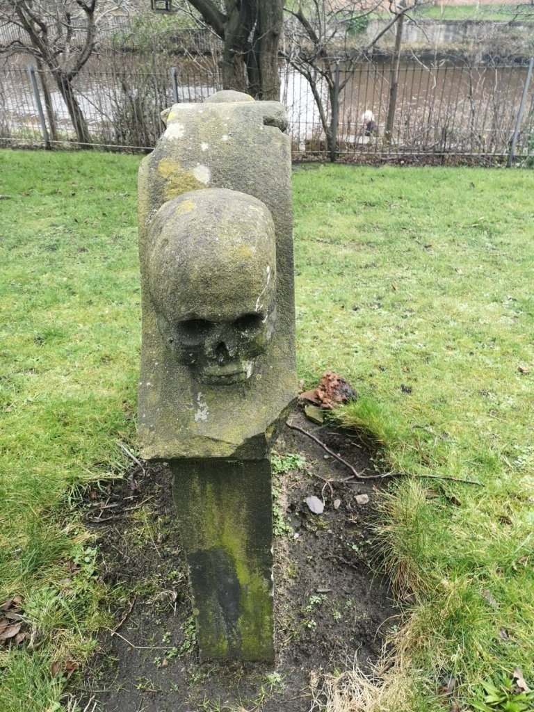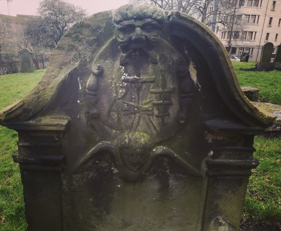 After rounding the corner of the Water of Leith and meeting the confluence of the wonderful network of Edinburgh cycle paths, we mount the steps onto Coburg Street where the North Leith Burial Ground is situated. According to The Spirit of Leithers (a Facebook Group) it is ‘The dead centre of Leith’!