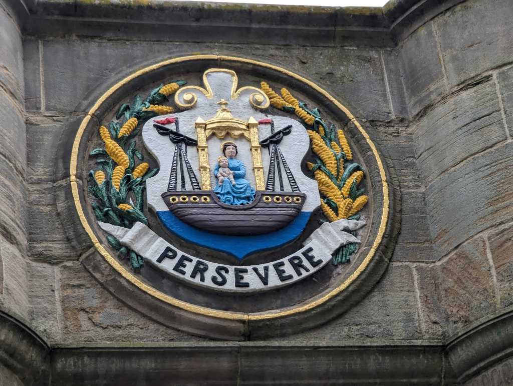 A little further up the road is the original site of the Chancellot Mill (now on Lindsay Place) and this was where corn was ground into flour (perhaps the reason for those corn cobs on the Persevere flag?) It was steam powered and had an 185 foot high clock tower. Producing 43 sacks an hour (twice the original prediction), it was described as ‘the most handsome flour mill in the world’!