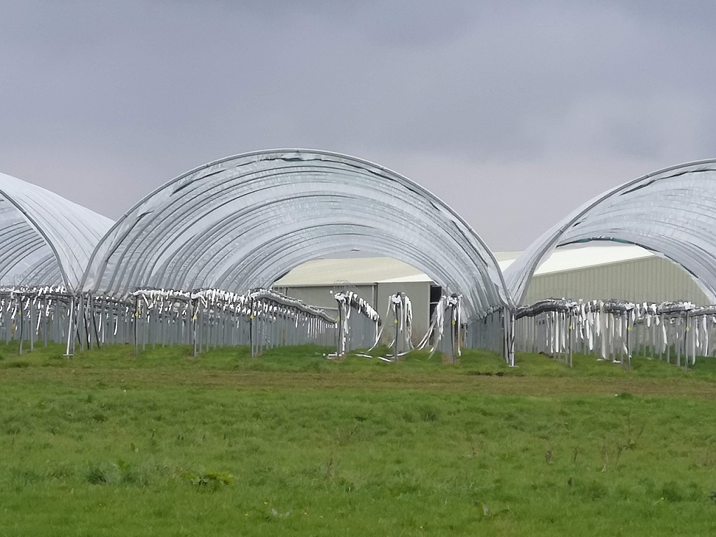 Doubling back on myself by the lane which curves around the lake, my attention was attracted by men’s voices, the first of several groups I passed during the morning, working away hard in close proximity. They were setting the strawberry plants onto the stands under the plastic hoods.