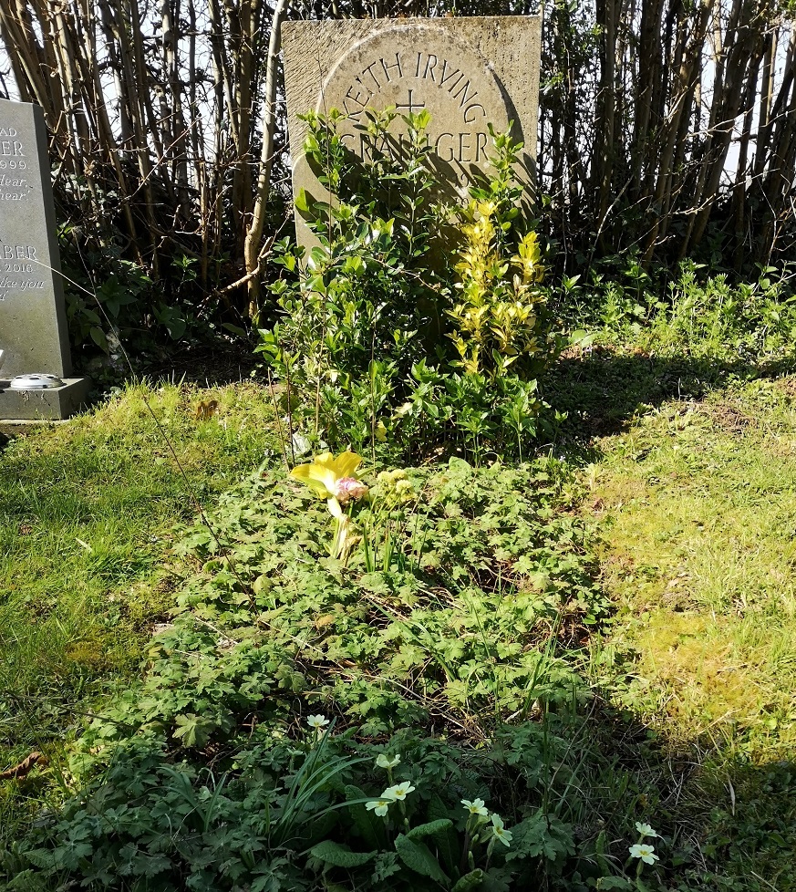 There’s a little lane off Yalding High Street, between the white-boarded, thatched house and the pale daffodil-yellow brick one with matching tiles (on the same side as St Peter’s and St Paul’s church). It takes you past the churchyard and through a gate which is now propped open with a sign saying it’s because of the corona virus. (It took me a while to work out why, but I think it’s so that you don’t have to touch the wood and possibly leave or catch germs). The cemetery with H’s grave and the rifle range are almost facing each other and you can see the controversial new builds and the rubble which has been left over. The Kintons is a well-used sports and dog-walking patch of grass with a children’s play area.
