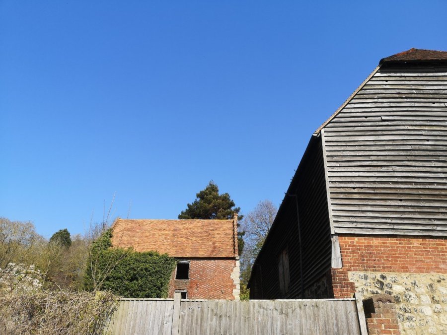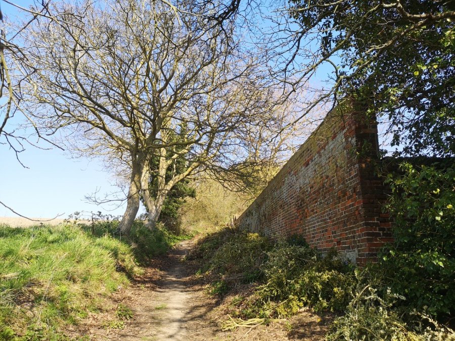 I took the Permissive Path (that is, not a public Right of Way, but one which is permitted by the landowner) over a tiny, planked bridge to West Street and stopped at Hunton St Mary’s church to visit my father’s grave. I took a quick photo of the Village Hall to send to my sister – she got married there – and then crossed back over, past the Engineering Works and went right. I wandered beside more agricultural land until I reached the junction between Barn Hill and the wonderfully named Lughorse Lane.