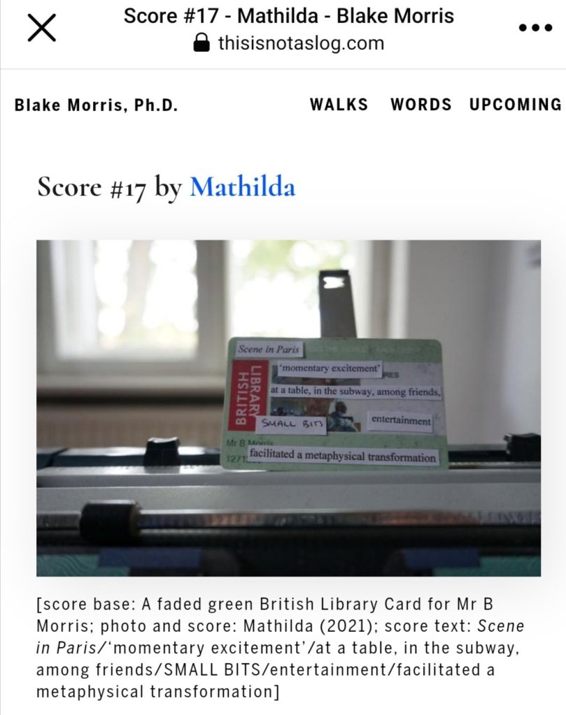 22.12.21 Please refer to the previous blog before reading this one as it explains the premise of the walk and my plan. Phrases in bold refer to the walking score prompts.