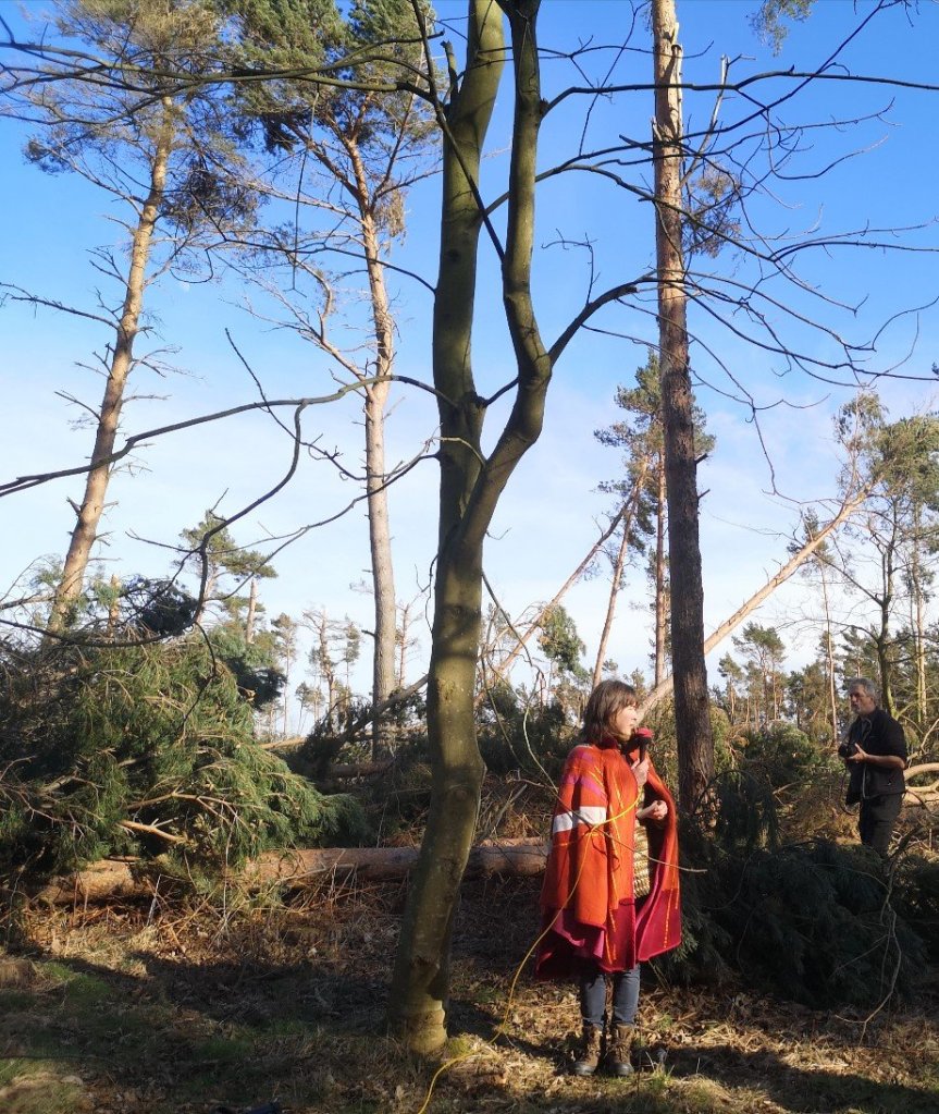 A contemplative walk round the John Muir Country Park trees following the effects of storm Arwen. Including live fiddling from Lewis, a community song from Jane Lewis, new poems from Rita Bradd and Tamsin Grainger, and soil sample collection by the Keeper of the Soils, Natalie Taylor.
