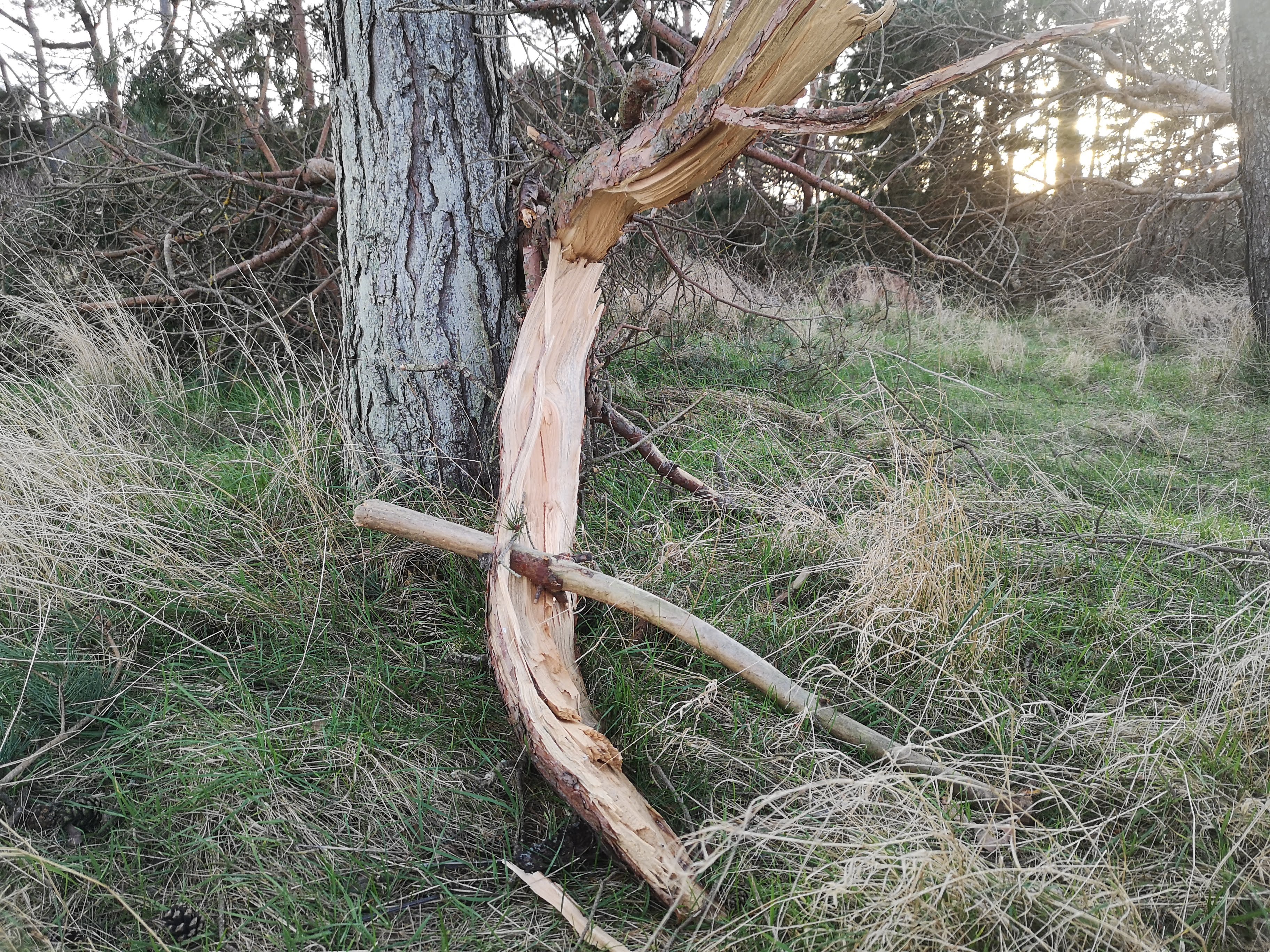 Broken branches, fallen boughs, John Muir Country Park, Scotland