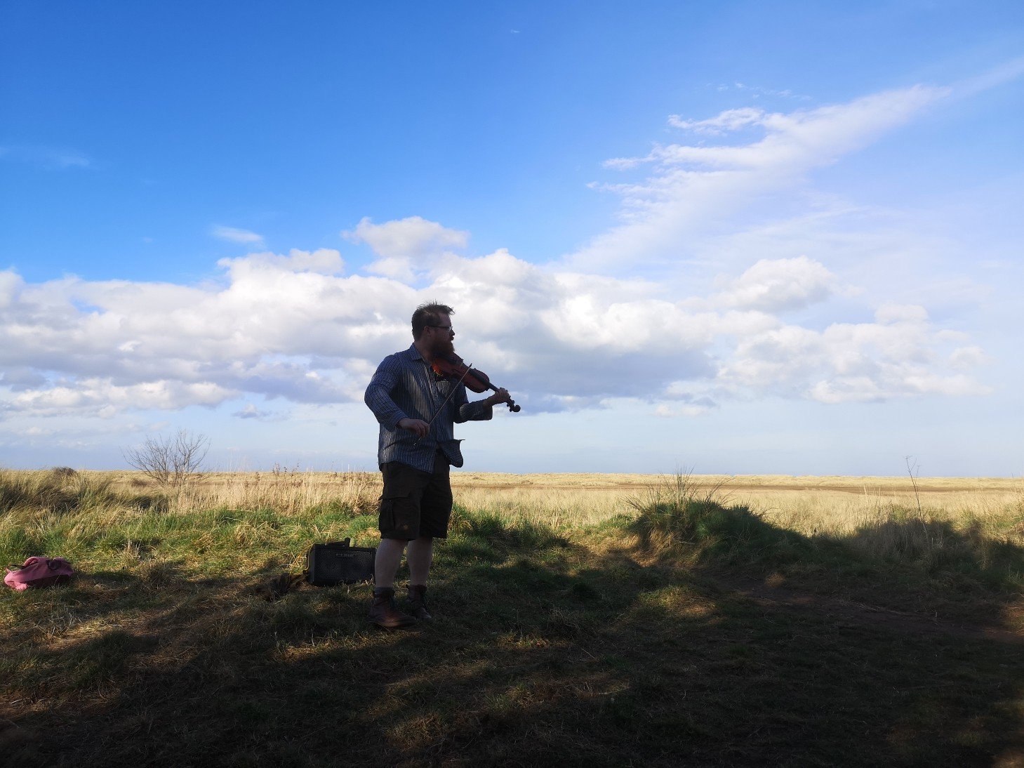 Lewis playing the fiddle, John Muir Country Park, Scotland