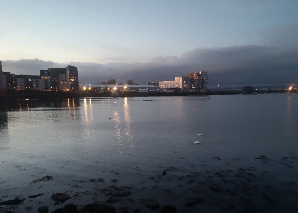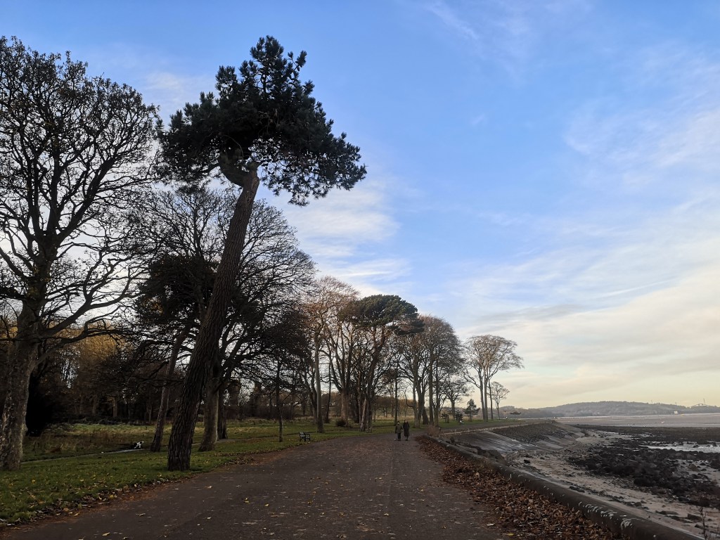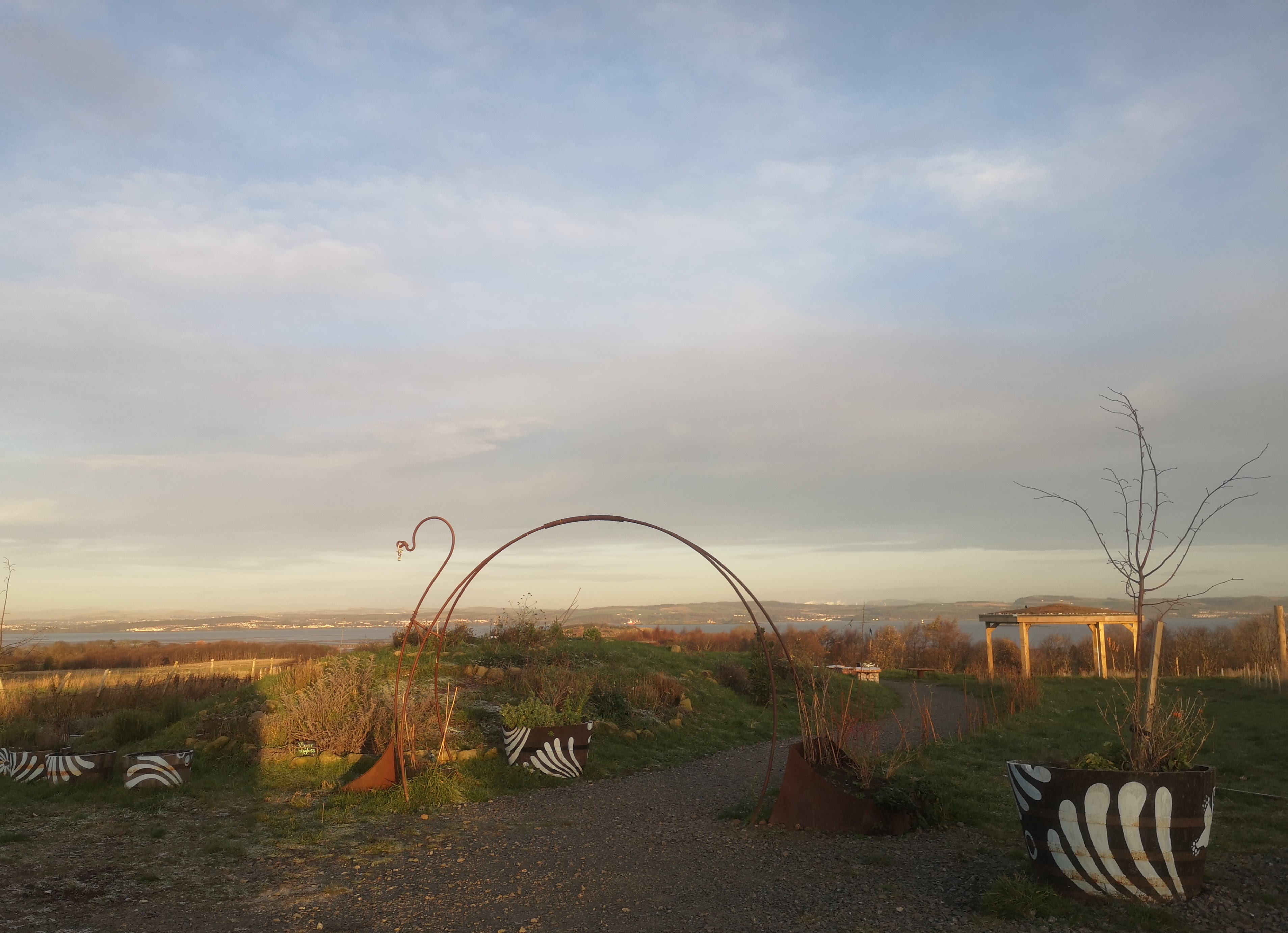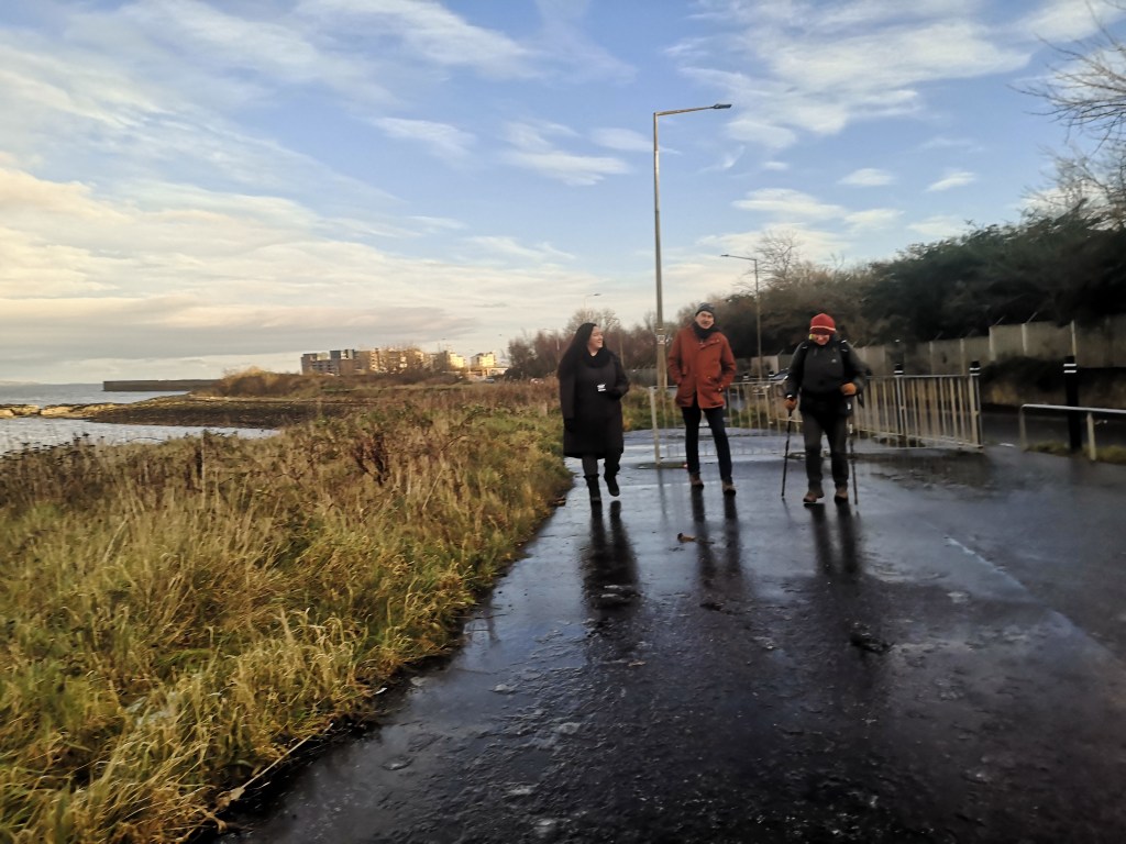 A small group of us met for a Community Walk on Wardie Bay by Granton Harbour, and walked along the coast in the direction of the Forth Bridges. We slid on the ice as far as the Boardwalk Beach Club and then headed inland to Lauriston Farm.