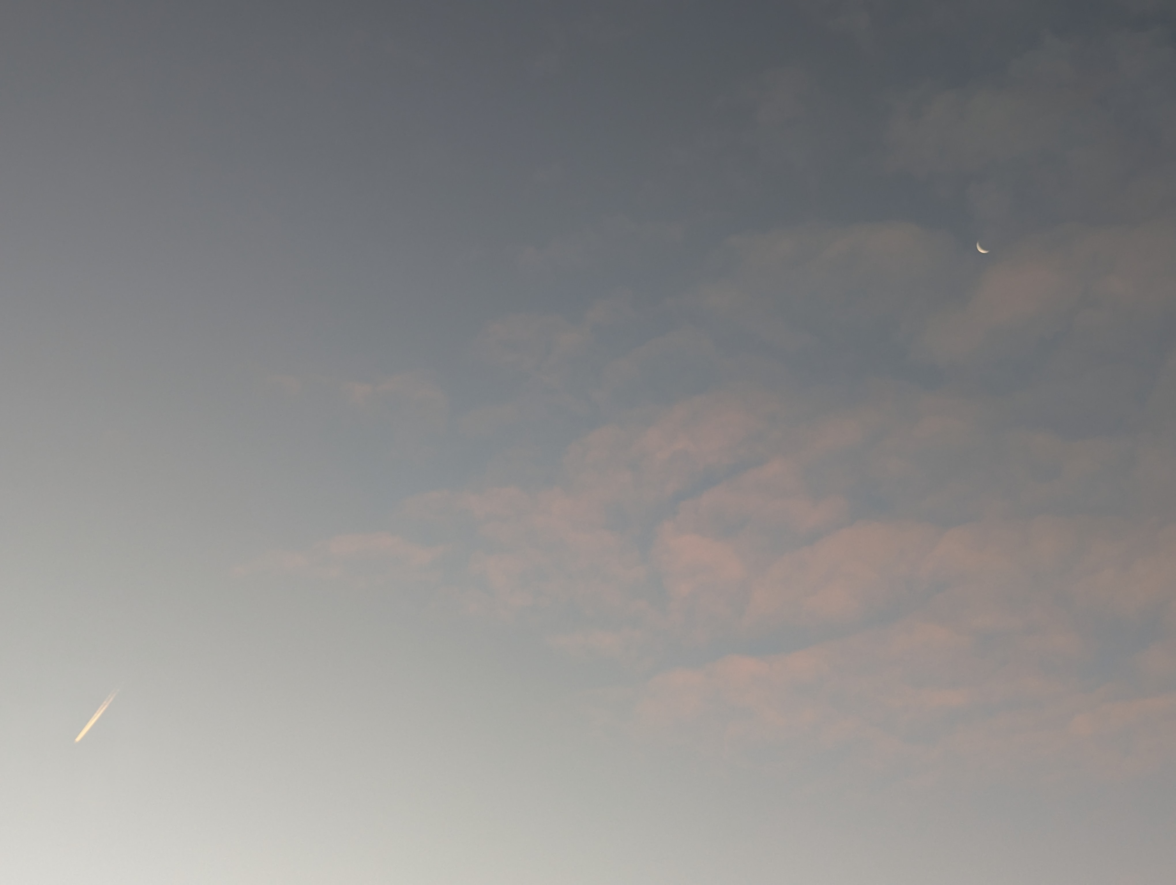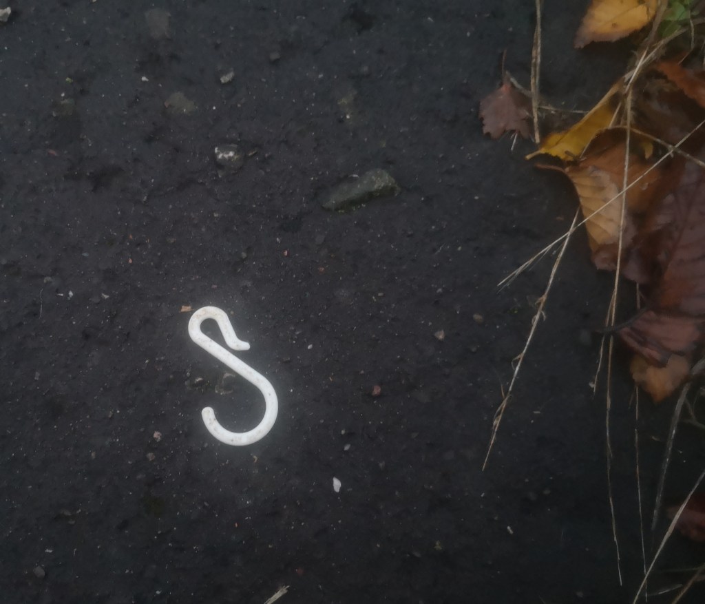 I learned that even when I get up at almost exactly the same time every day and walk almost the same route, the world is always different. It’s never the same. My thoughts are not the same, nor are my actions (even if I try) and neither is the sky / moon / sea / trees / rubbish (though the s-shaped hook was there impacted into the pavement every day). I liked the way the lichen pattern nearby and the shape of the crescent moon above seemed to be related to the curtain hook.