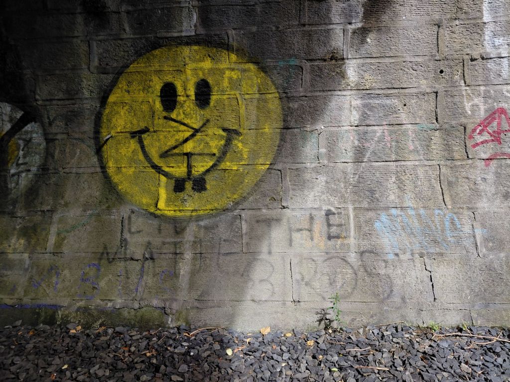 Local graffiti on the opposite wall of the Trinity Tunnel, Edinburgh