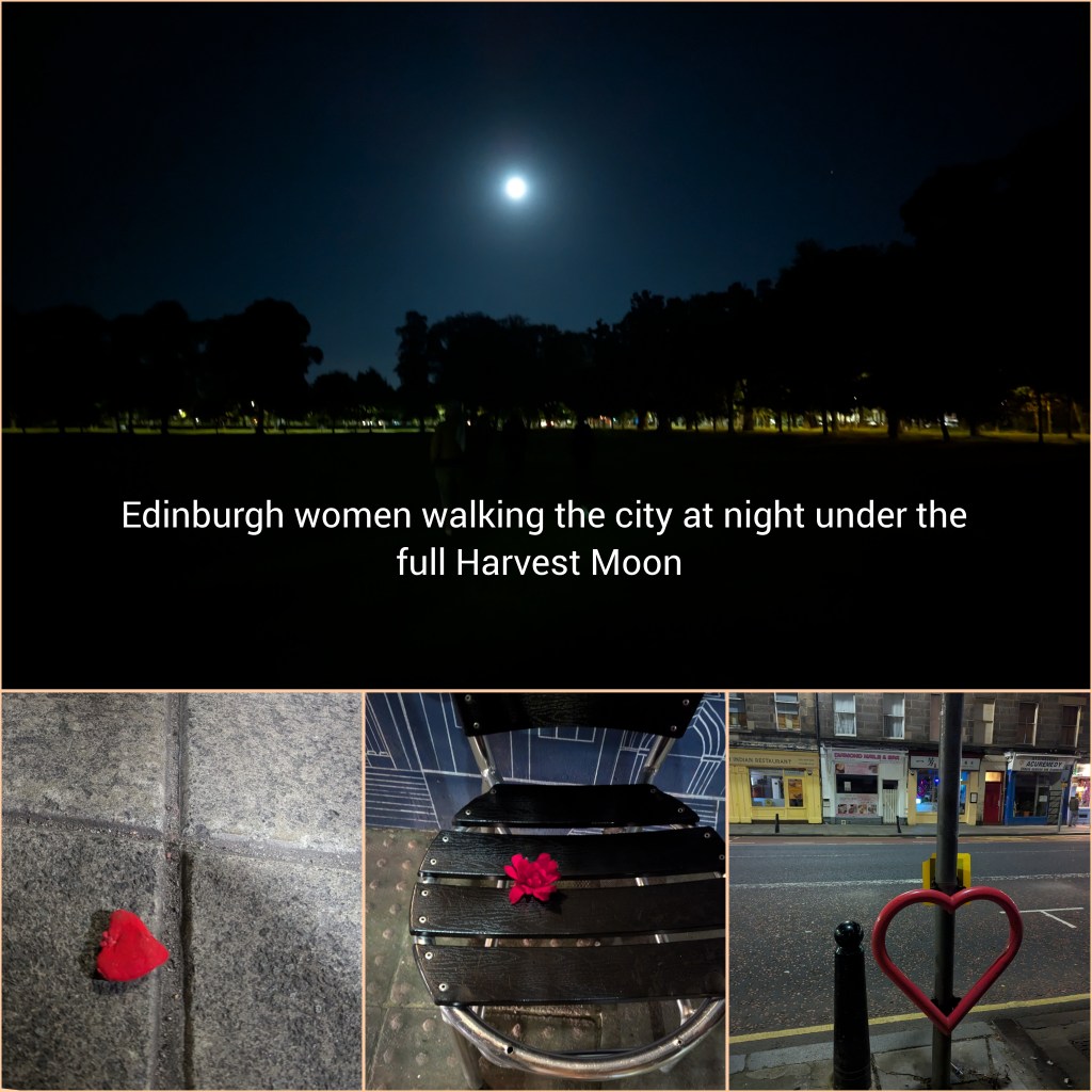 This annual, world-wide walk is the creation of Eleonore Ozanne and 2024 was the third year that she hosted it. Ours was the first such in Edinburgh and we walked together on Wednesday 18 September 2024 from Haymarket Station to the Meadows, Edinburgh with the moon in the lead.