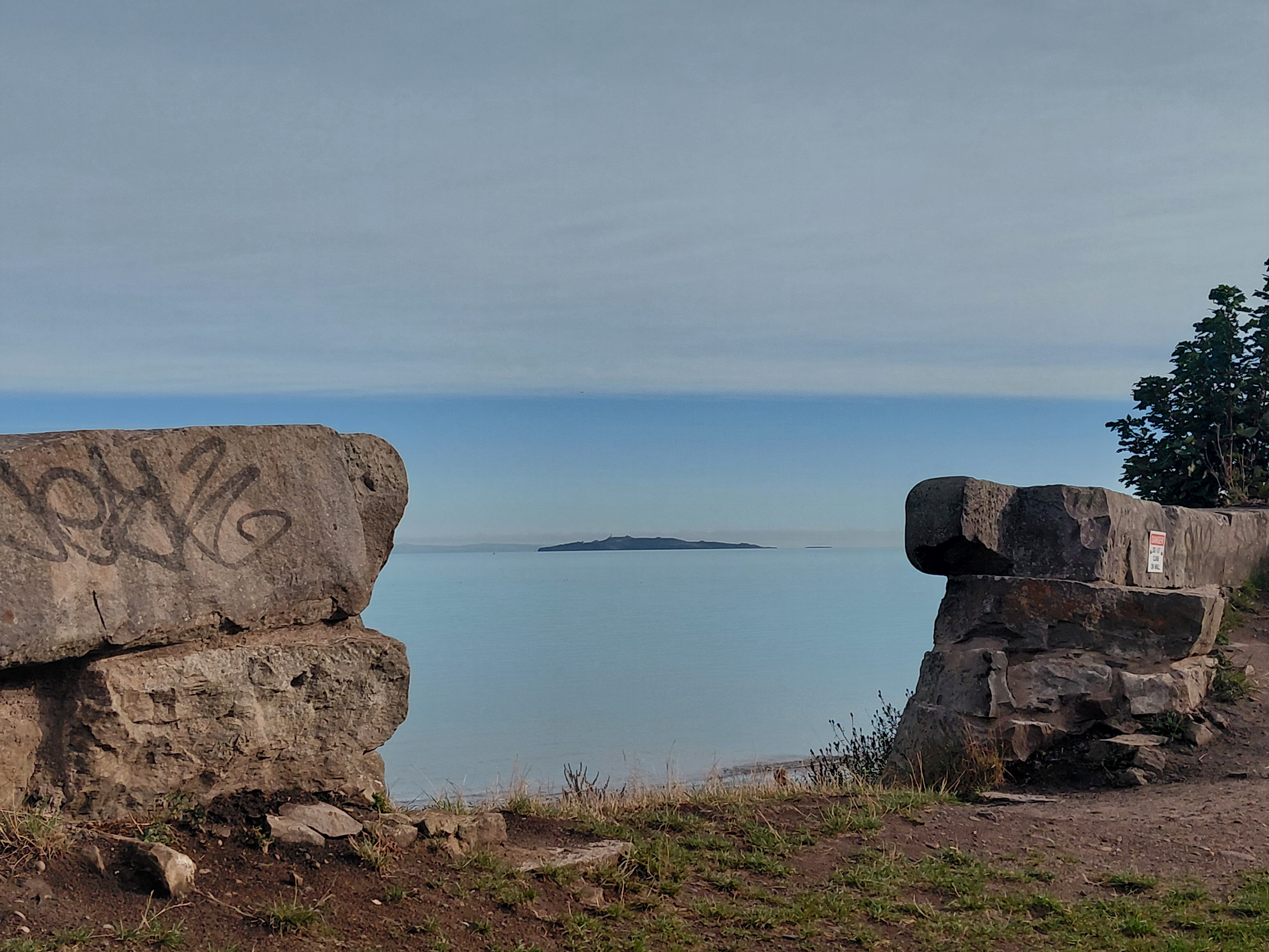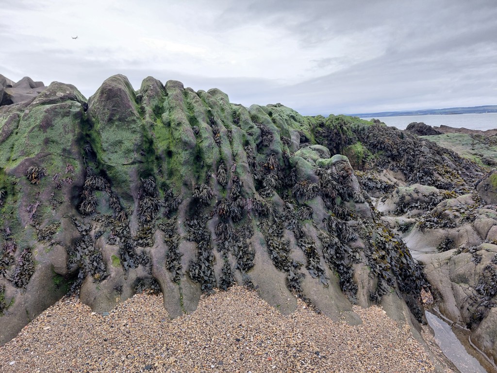 As the theme of this year’s festival was ‘Rock’ we were searching for rocks, stones and related structures. We talked about the history of the area, social and archeological, and visited the back of the Depot music studios where rock music is recorded. The islands of Inchkeith and Cramond were clear from a distance. Made of volcanic / igneous rock, sandstone, shale, coal and limestone, sufferers of syphilis were banished there to live out their lives after the Grandgore Act was passed in 1497. Inchkeith on wikipedia.