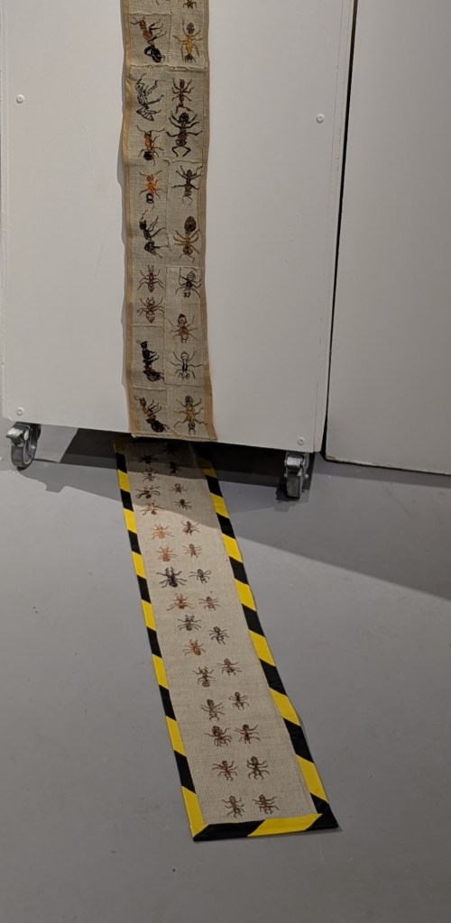 Walking with Ants was a 2025 major project involving the creation of a new stitched art work for the Line(s) of Enquiry exhibition at Hardwick Gallery, Cheltenham and a pilgrimage. The Pilgrimage for the Small Things walked from Chepstow on the English-Welsh border, in the Forest of Dean, along the River Severn, and through the Cotswolds, arriving at the associatied symposium at the University of Gloucestershire.