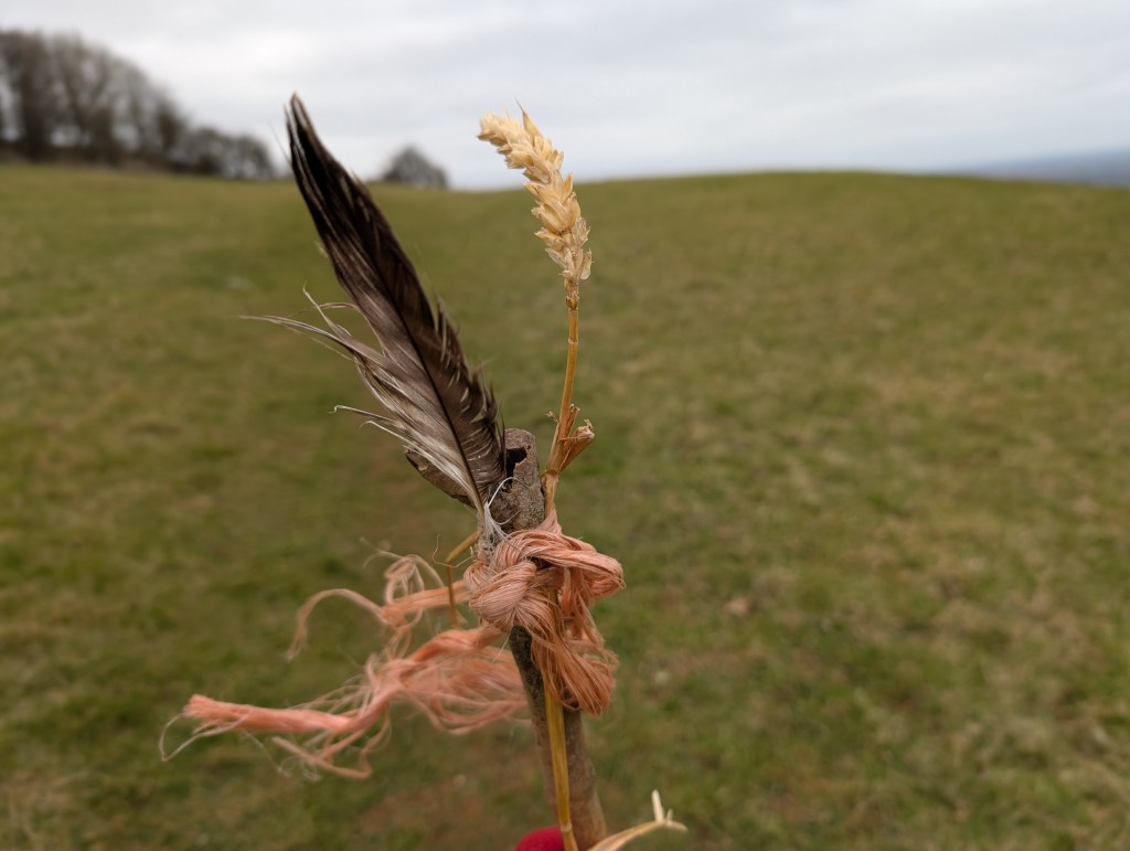 As I walk, I frequently make Wayside Shrines – a way of showing appreciation to place. I collect things as I walk, dropping them into my pocket, and when a suitable ‘altar’ presents itself, I assemble what seems right in order to make an offering. It may be that ity does not last long. Perhaps it becomes covered with snow or dry leaves, is taken apart by birds or animals, or simply blown away in the wind; it doesn’t matter. The gesture has already been made.