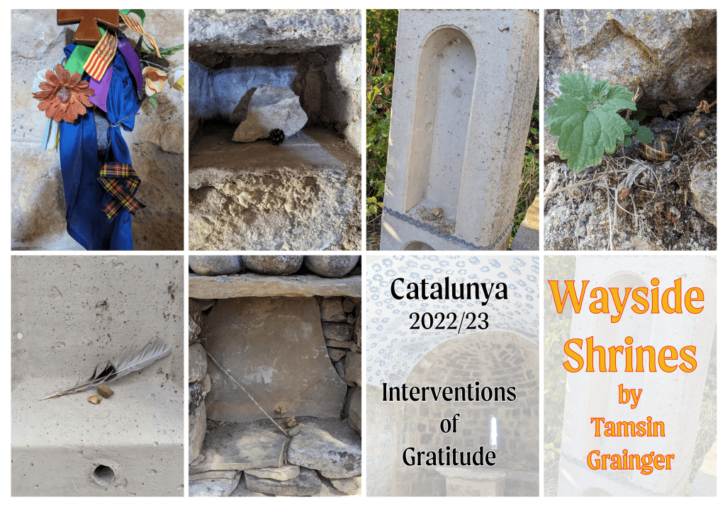The Girona mini pilgrimage is an example of a community pilgrimage. Part of the Walking Arts Encounters in Cataluna, 2022. It was followed by two more in other parts of Cataluna: Olot and Vic. I walked solo pilgrimage along parts of the Cami Sant Jaume before the Walking Arts Encounters began, and to Montserrat afterwards.