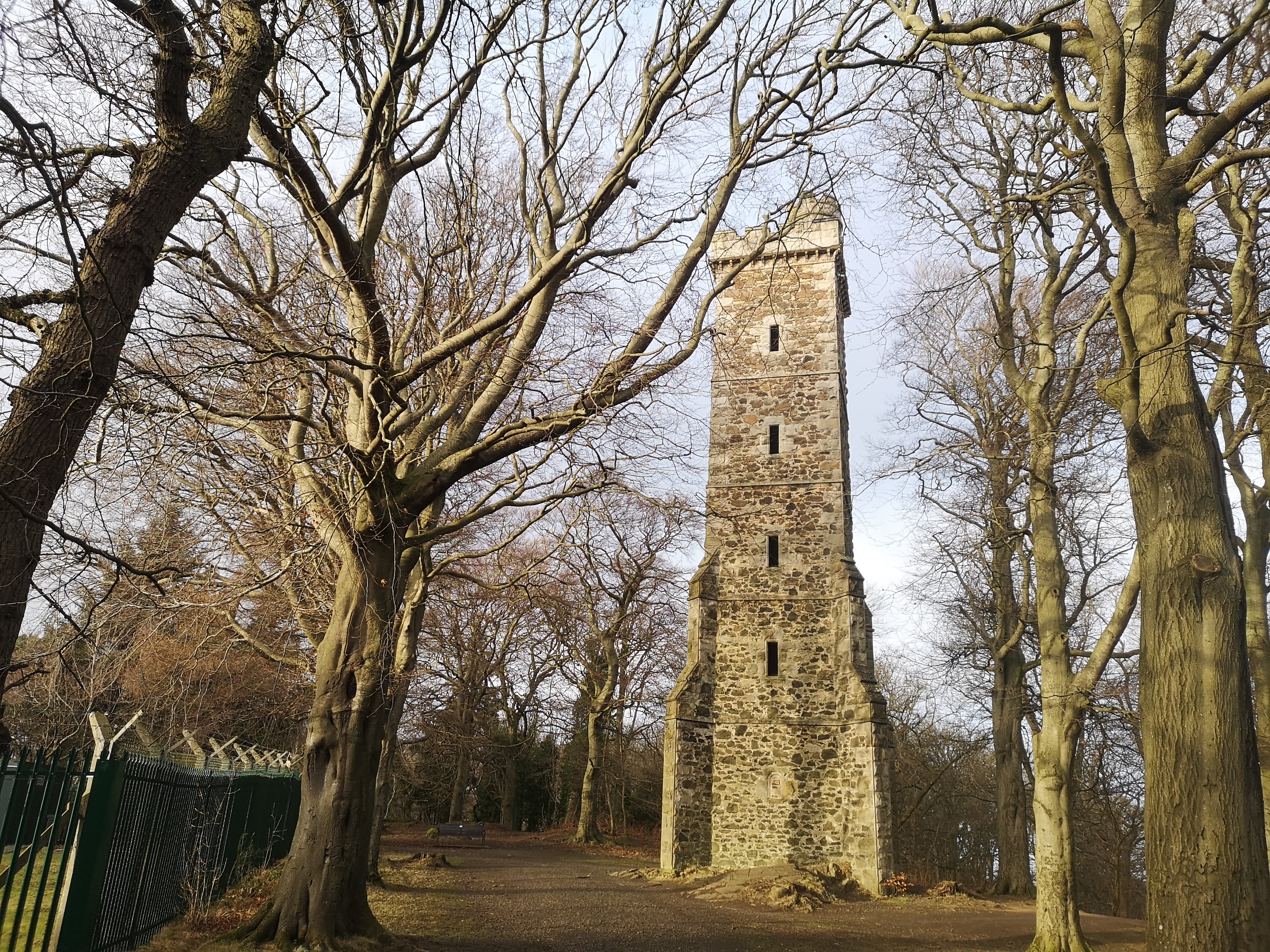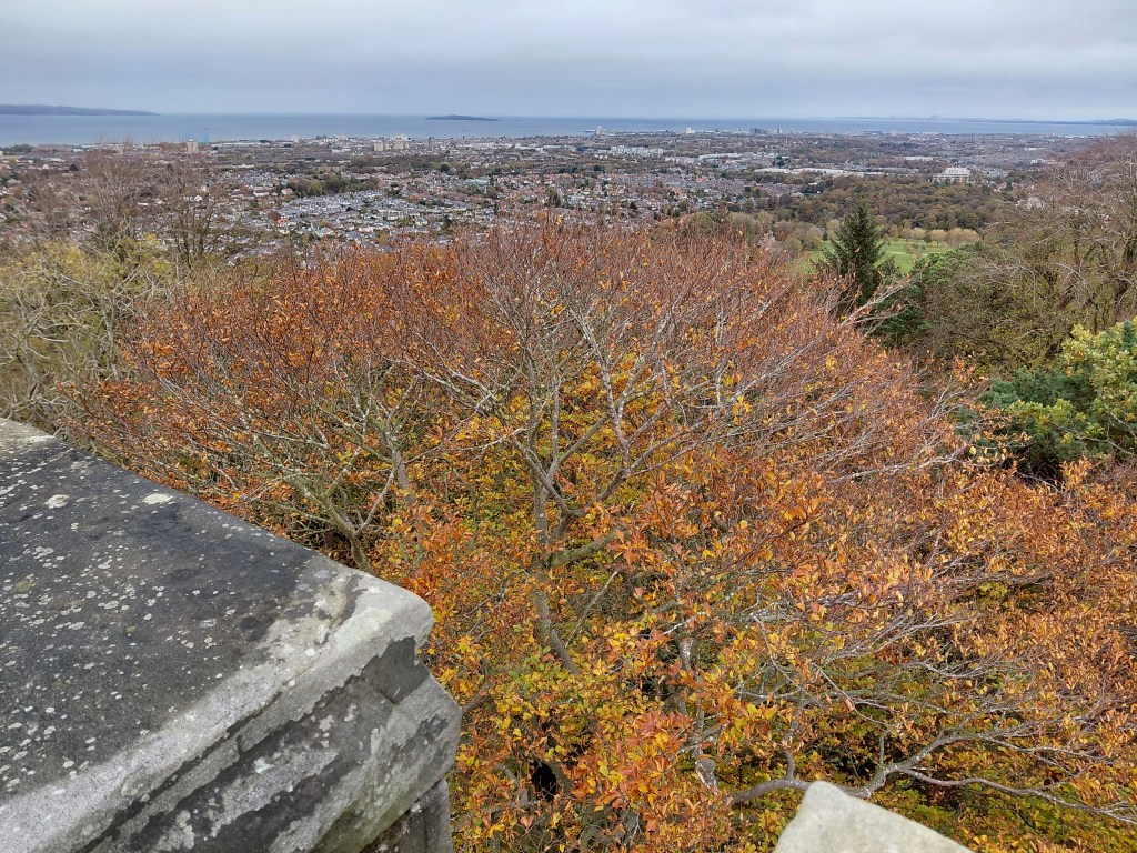 Photos above: Corstorphine Hill (Scott) Tower (1871) and the view from the top (200 feet) towards Granton