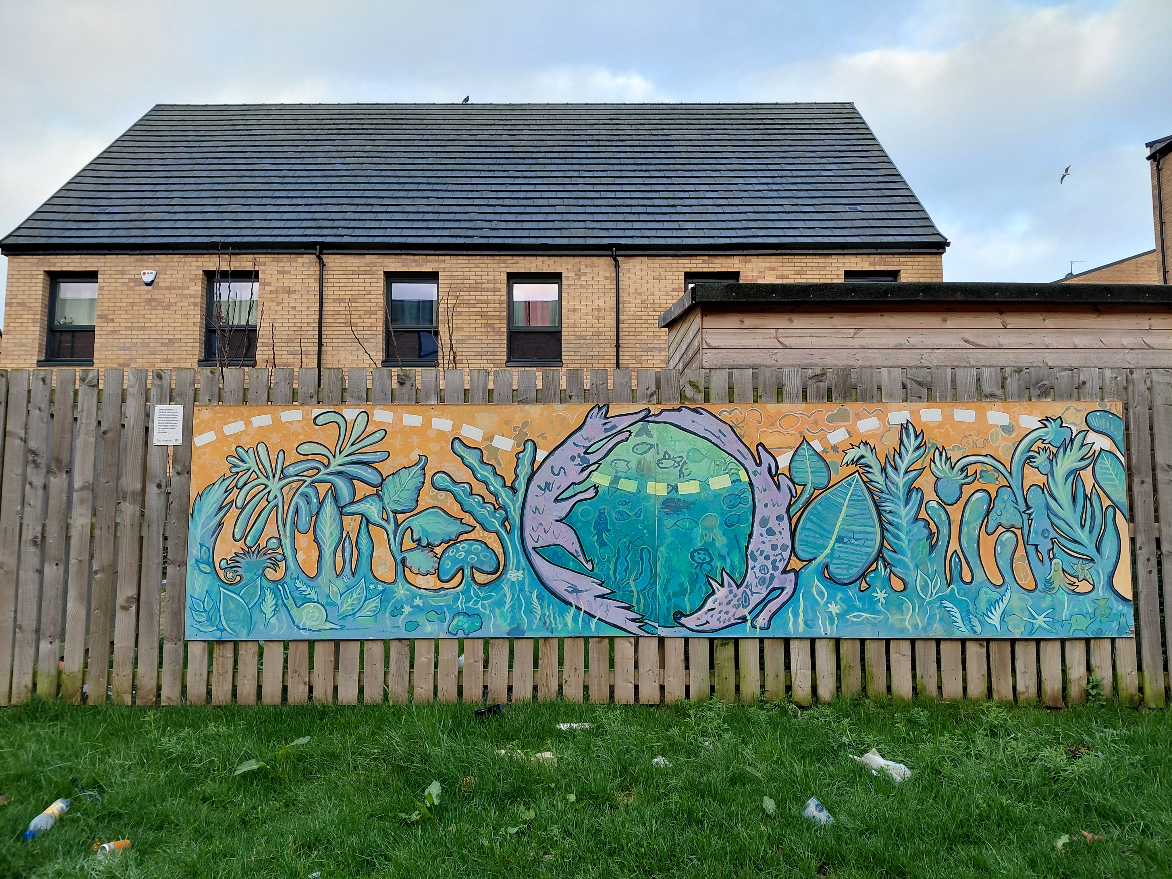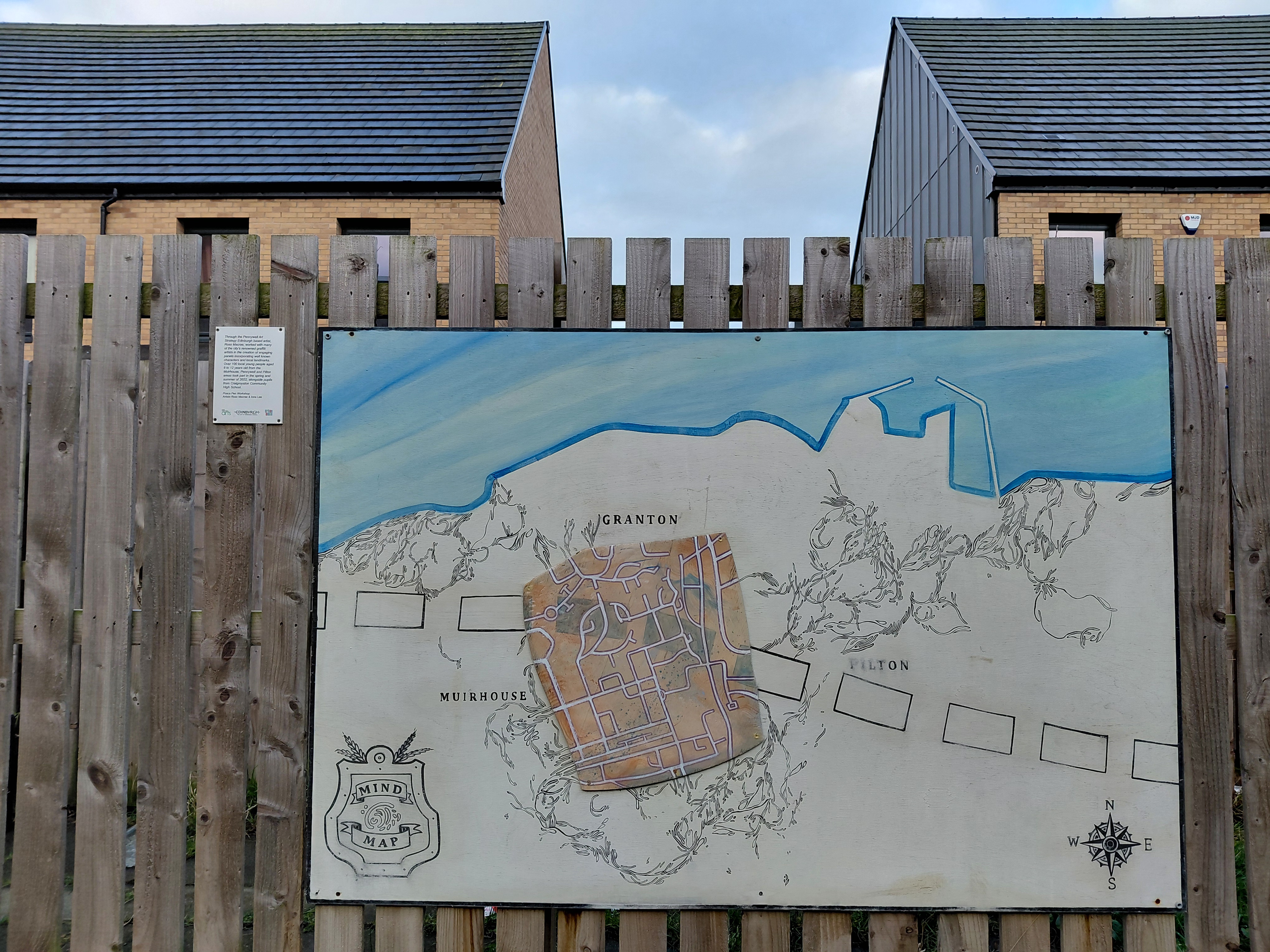 Pennywell Arts Heritage Trail, Muirhouse and Pilton, Edinburgh – murals by artists-in-residence Fraser Gray and Eve Paredes. Eva and Fraser delivered the murals as a result of a range of public consultations and workshops for the local community around the new development. The Pennywell Arts and Heritage Trail was delivered with North Edinburgh Arts, funded by Urban Union and supported by the Edinburgh Council. Fraser Gray on Facebook Muirhouse Festival mural on YouTube