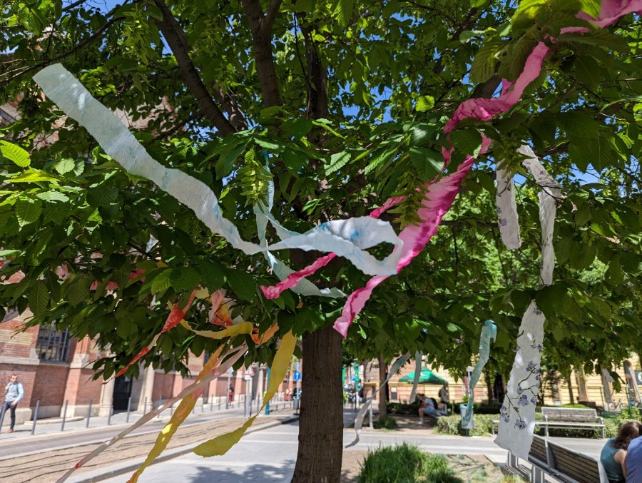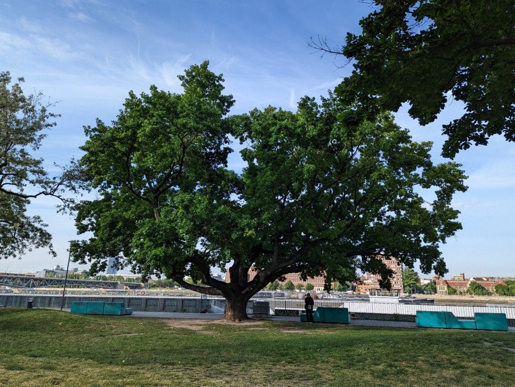 At Röszke, we waited at the border crossing from Serbia to Hungary, one of the 29 Schengan countries, arriving at 10am and staying until 3pm when we finally got moving again. Luckily the sun was shining and we all spread out. I was the only person doing T’ai chi under the trees (it felt good after hours of sitting on a coach), but not the only one meditating.
