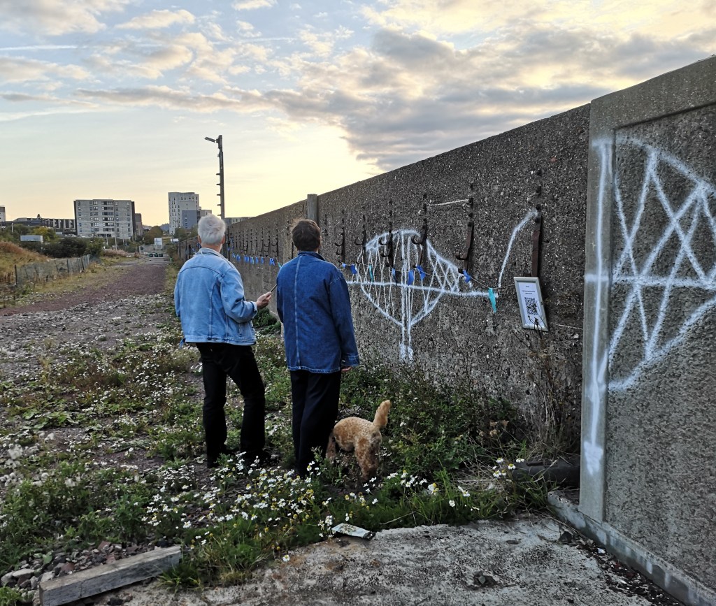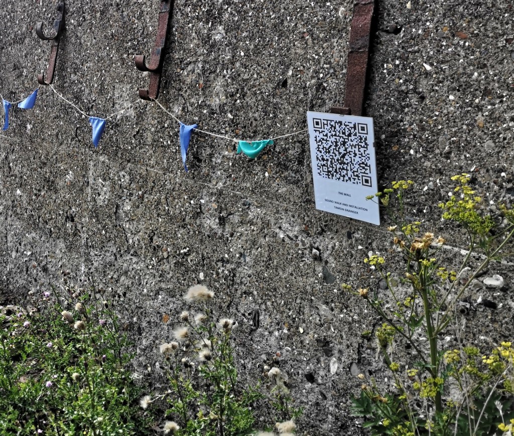 I’m sorry to say that this installation has become ragged from the weather and time. You can still walk the wall and listen to the Sound Walk on your phone, but you will need to access it either before you leave home or from here if you have sufficient data, as there is no QR code currently at the site.