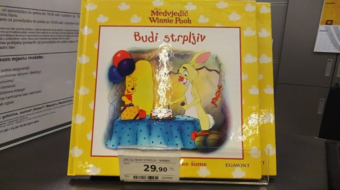 Winnie the Pooh in Croatian, sold at Booksa.Trams have handy places to put your bag, meaning it doesn’t have to go on the floor and get wet, or if it already has a soggy bottom, on your lap!