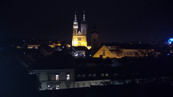 On the way up the many steps to the Museum of Broken Relationships.Giving great views of the city.Zagreb cathedral at night.The cafe at the Museum of Broken Relationships.The caterpillar you can see in the picture is a story where the couple broke off one of its legs each time they met. They agreed that when all were off they would marry (at least I think that was it). Only 5 or so were gone by the time they broke up 😦