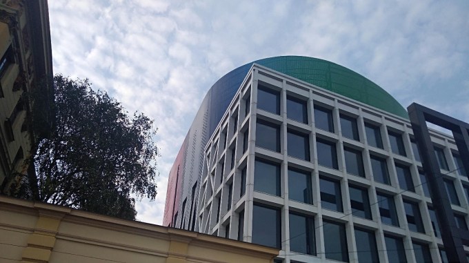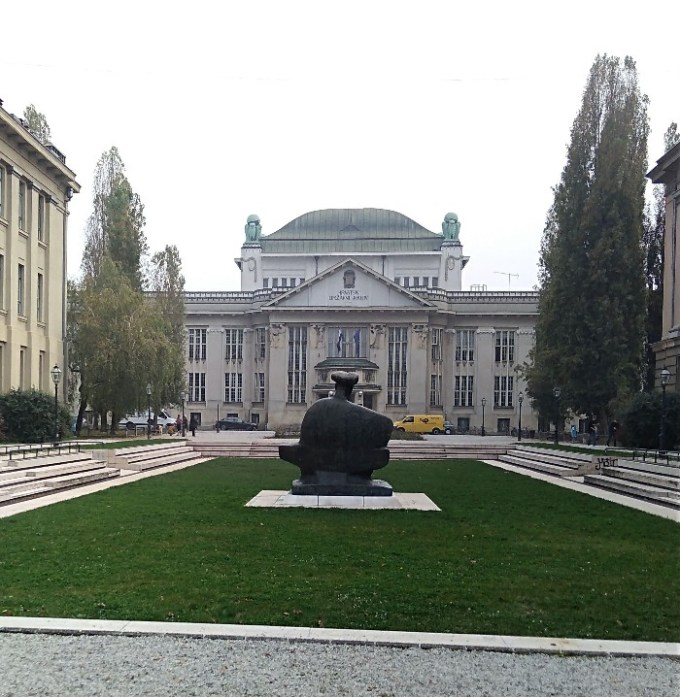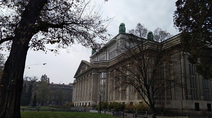 Opposite the Botanic Gardens is what I call the owl building. It has oxydised green owls at roof height, symbol of wisdom. That’s them above, on the top right and left corners.It is the Croatian State Archives and the weather was too bad to get a proper shot of them from the back.