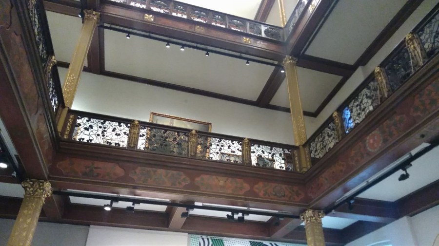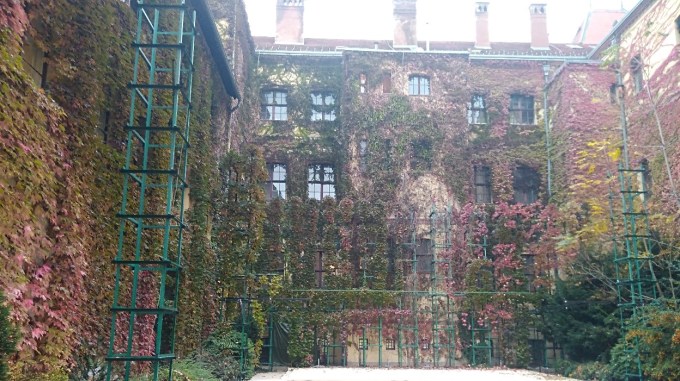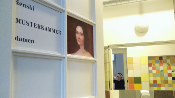 In the basement are the winners of an International Photography Exhibition. This one, by Jorie Horsthuis, is about translators at the War Crimes Court in The Hague which I found really moving. (Museum of Arts and Crafts, Zagreb, Croatia)And this, entitled Scripta Manent, which the sign says ‘allows us to look at the women from the historical country of Medea. Iron Curtain, independence, war and cold. Disconnected from electricity.’ It highlights the lot of the women who have paid vast sums to relocate to get a job, leaving their children and families behind in Greece. (Museum of Arts and Crafts, Zagreb, Croatia)I really liked this candelabra. (Museum of Arts and Crafts, Zagreb, Croatia)This is the front door of the Ladies Toilet, looking inside. (Museum of Arts and Crafts, Zagreb, Croatia)The interior main hallway of the Museum of Arts and Crafts reminds me of that at the Portrait Gallery in Edinburgh. (Zagreb, Croatia)The courtyard with its ivy clad walls looks like a nice summer spot for a sit-down. (Museum of Arts and Crafts, Zagreb, Croatia)The Arts and Crafts Museum from the outside. (Zagreb, Croatia)