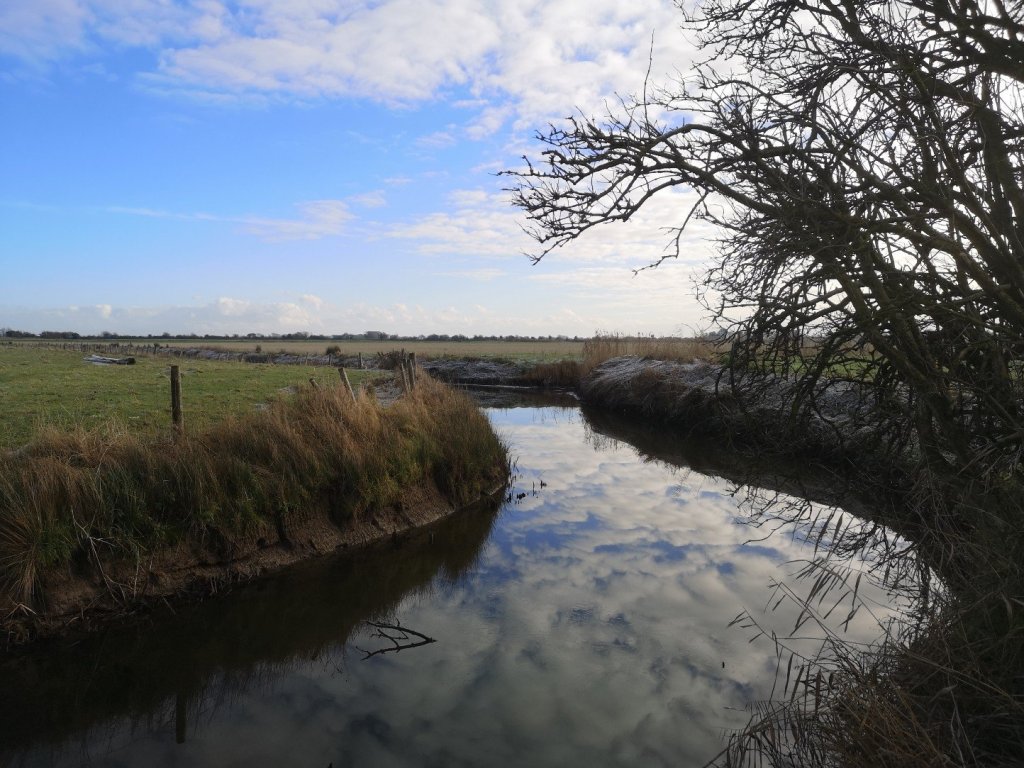 Water courses abound on these former marshes. Winchelsea to Rye, East Sussex