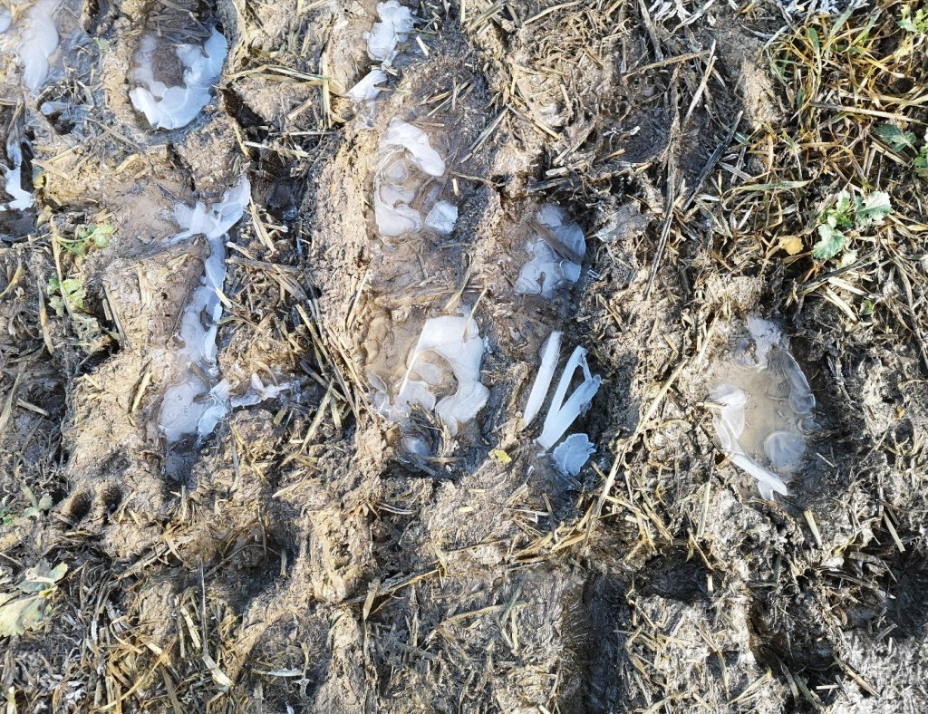 There was ice in the ploughed ruts and water everywhere. I followed the designated way, but it was little more than a desire path.